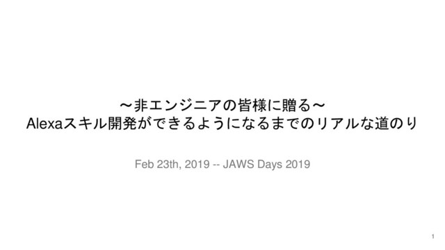 〜非エンジニアの皆様に贈る〜 Alexaスキル開発ができるようになるまでのリアルな道のり 1 Feb 23th, 2019 -- JAWS Days 2019