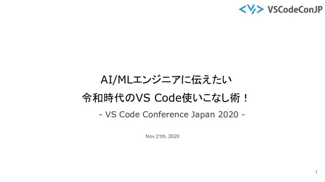 Nov 21th, 2020 AI/MLエンジニアに伝えたい 令和時代のVS Code使いこなし術! - VS Code Conference