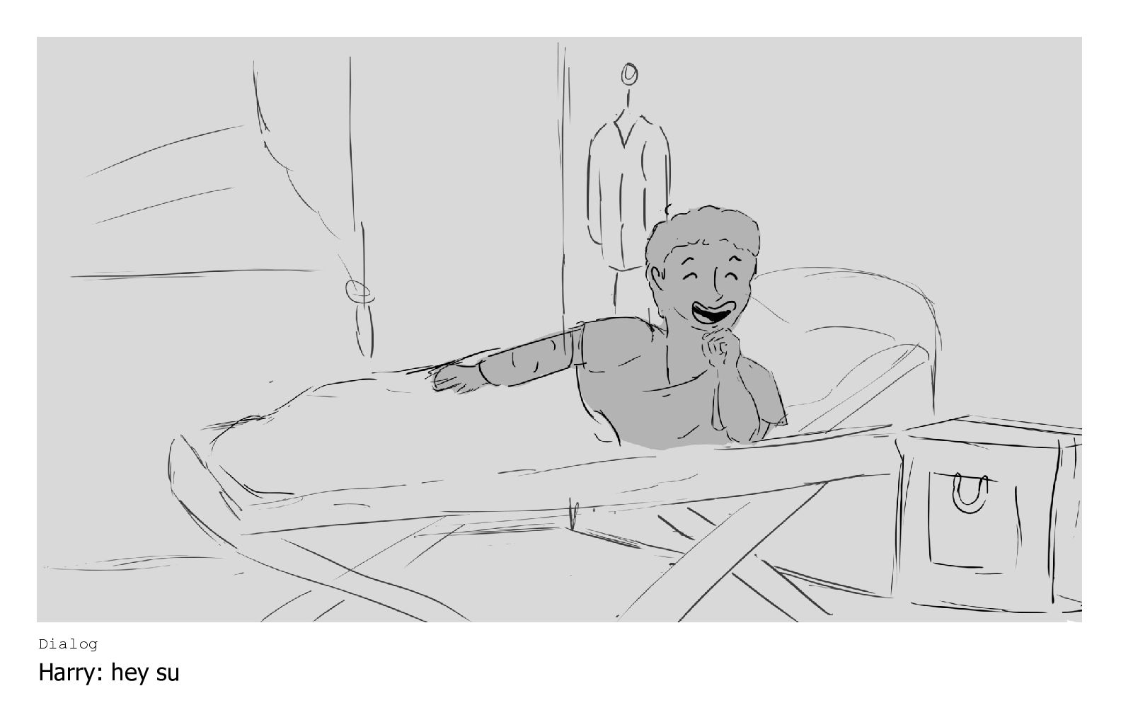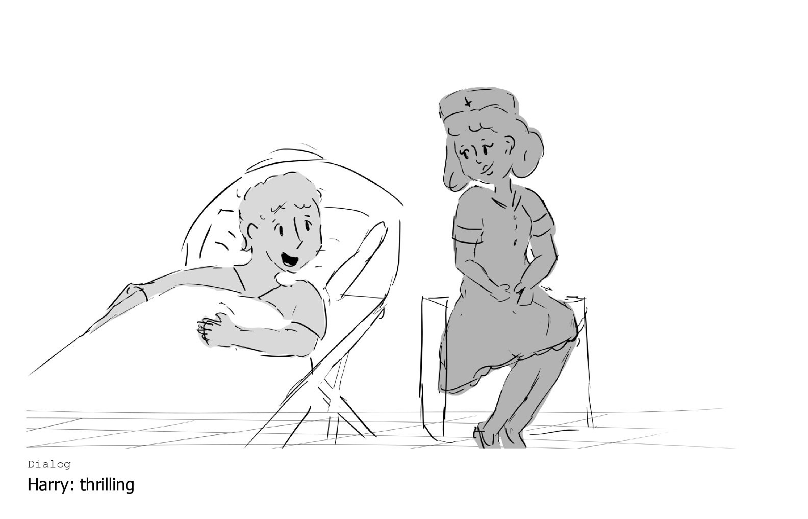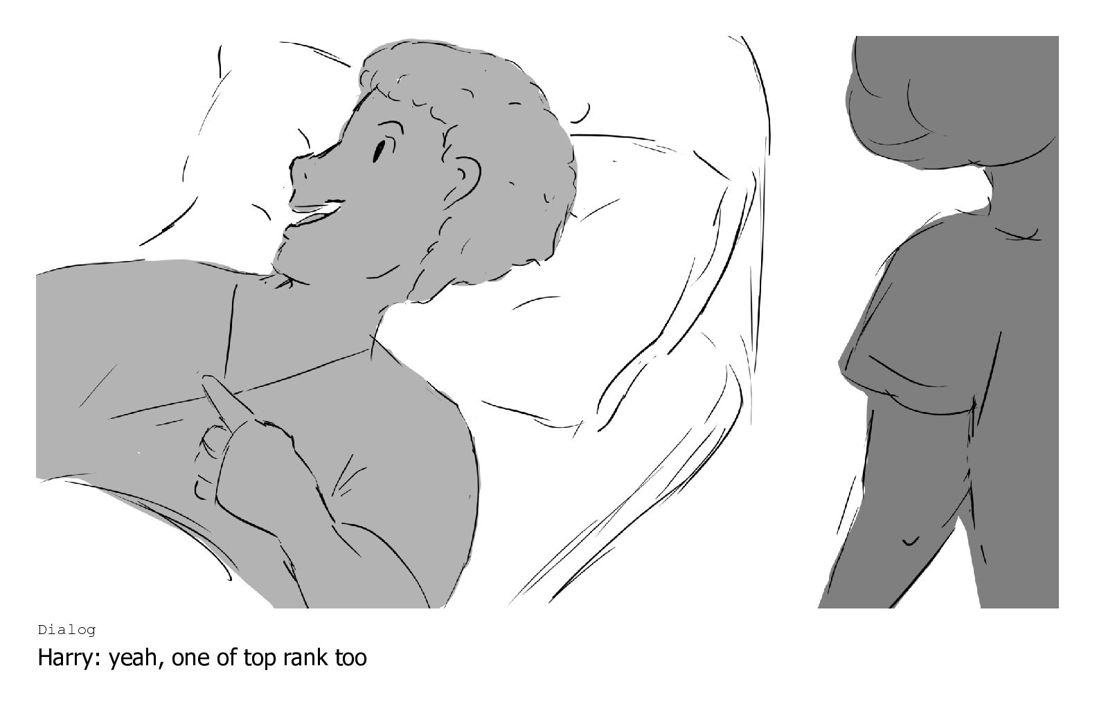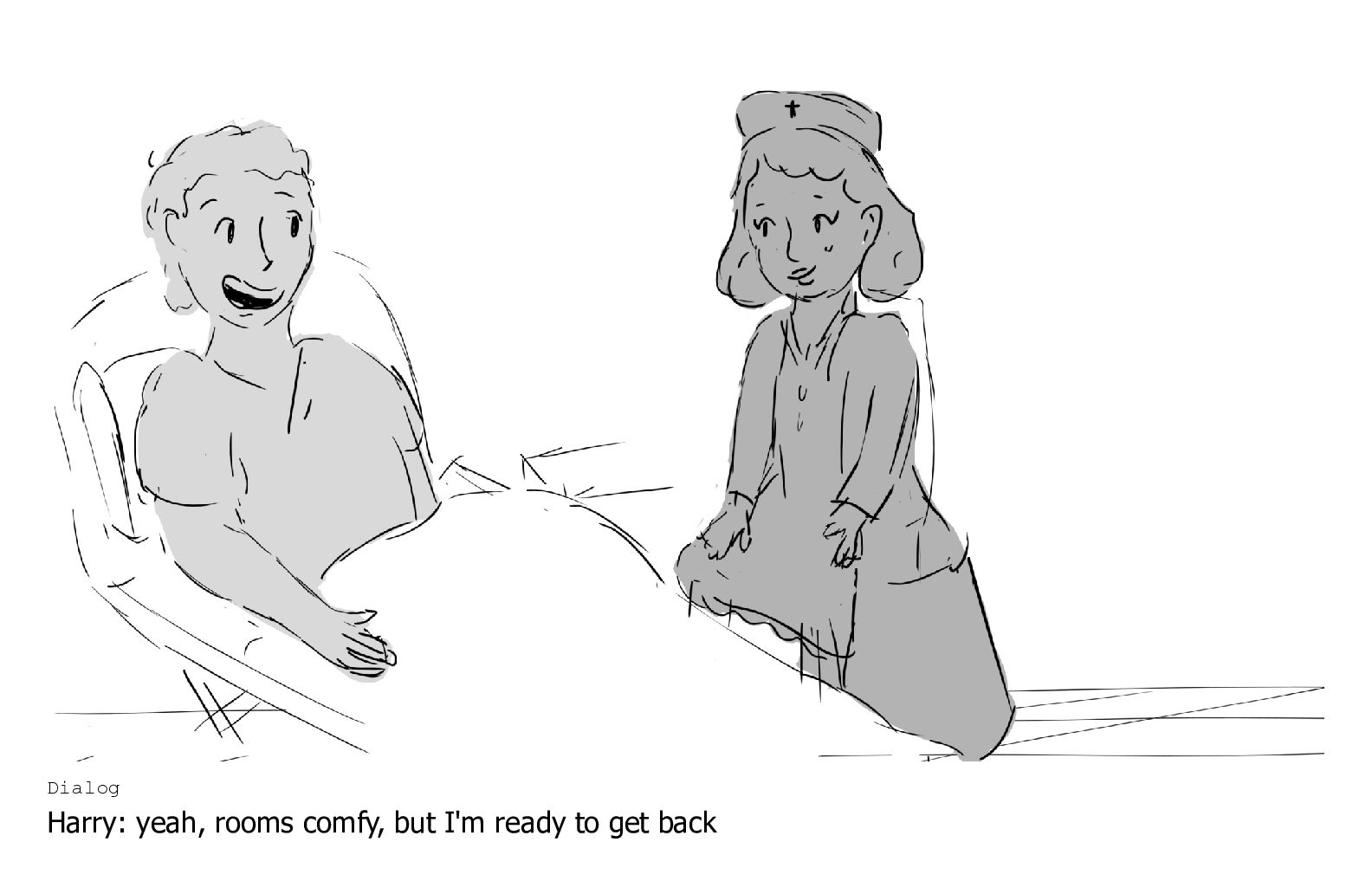 Dialog Harry: yeah, rooms comfy, but I'm ready to get