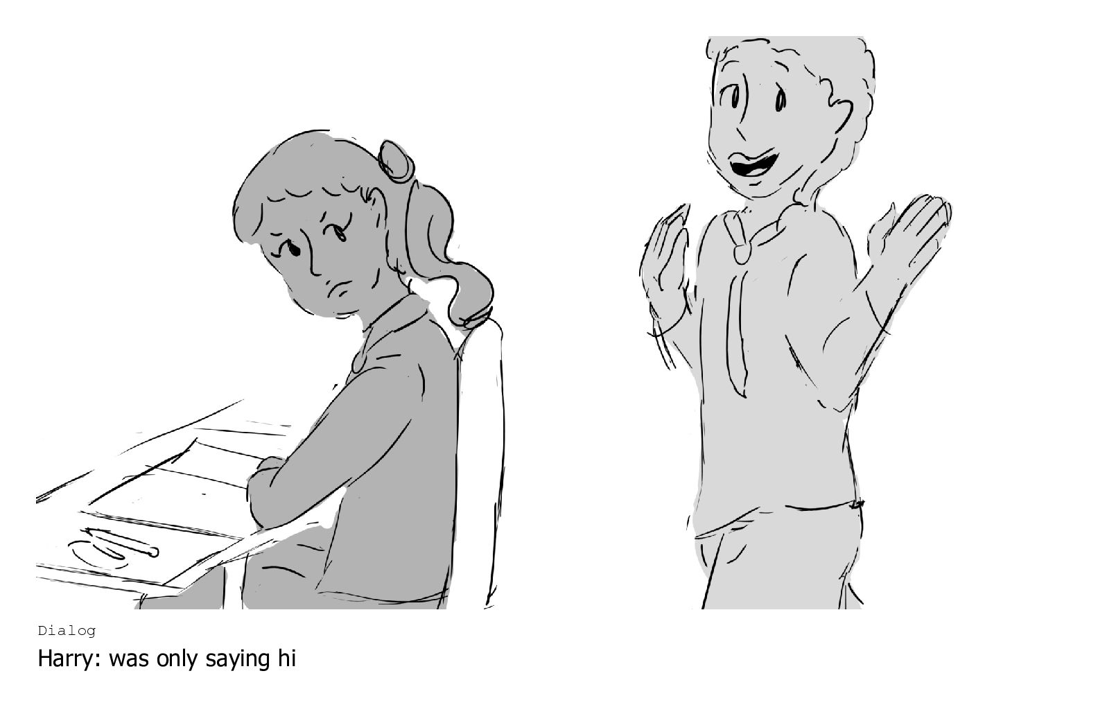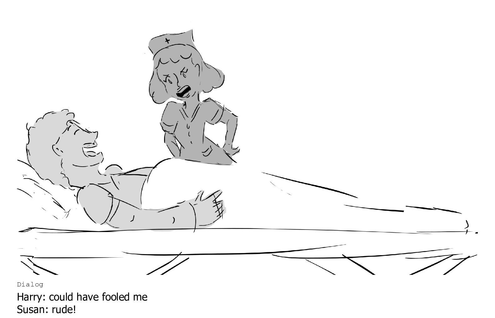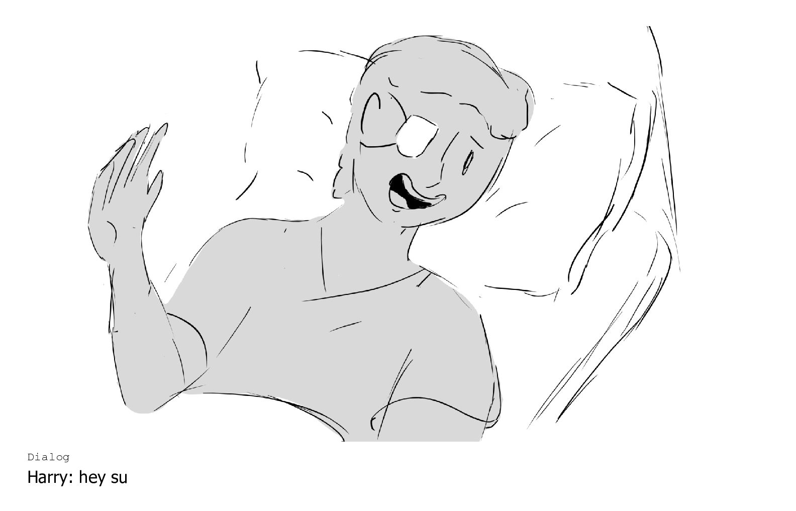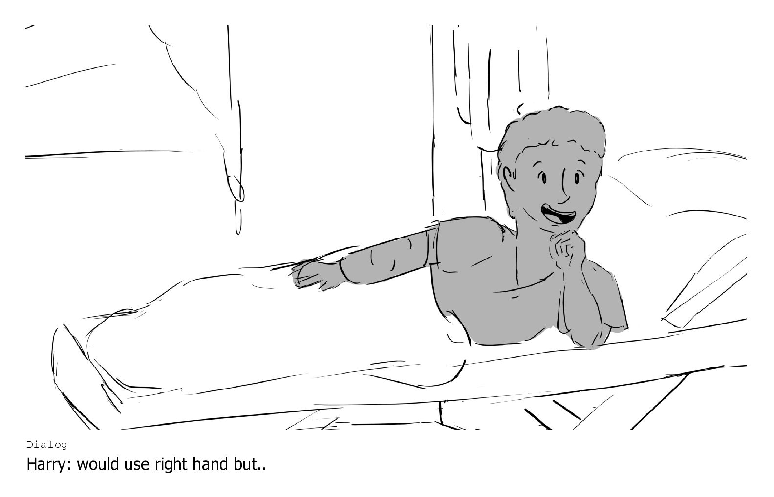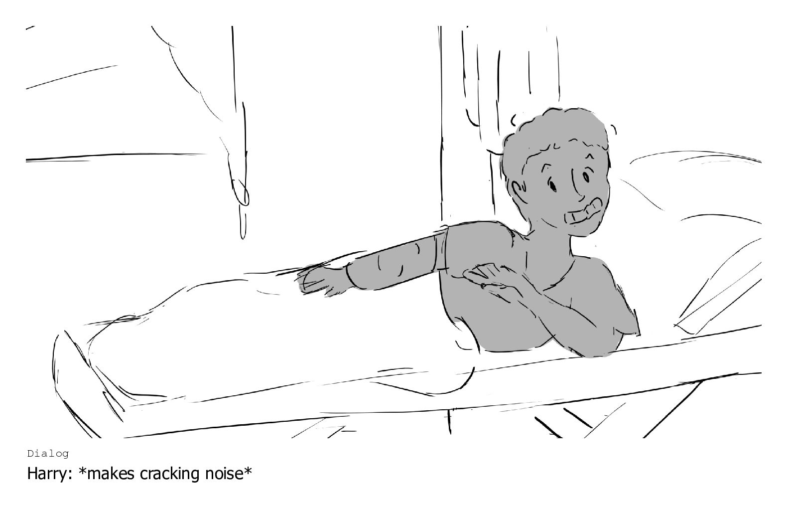 Dialog Harry: yeah, rooms comfy, but I'm ready to get