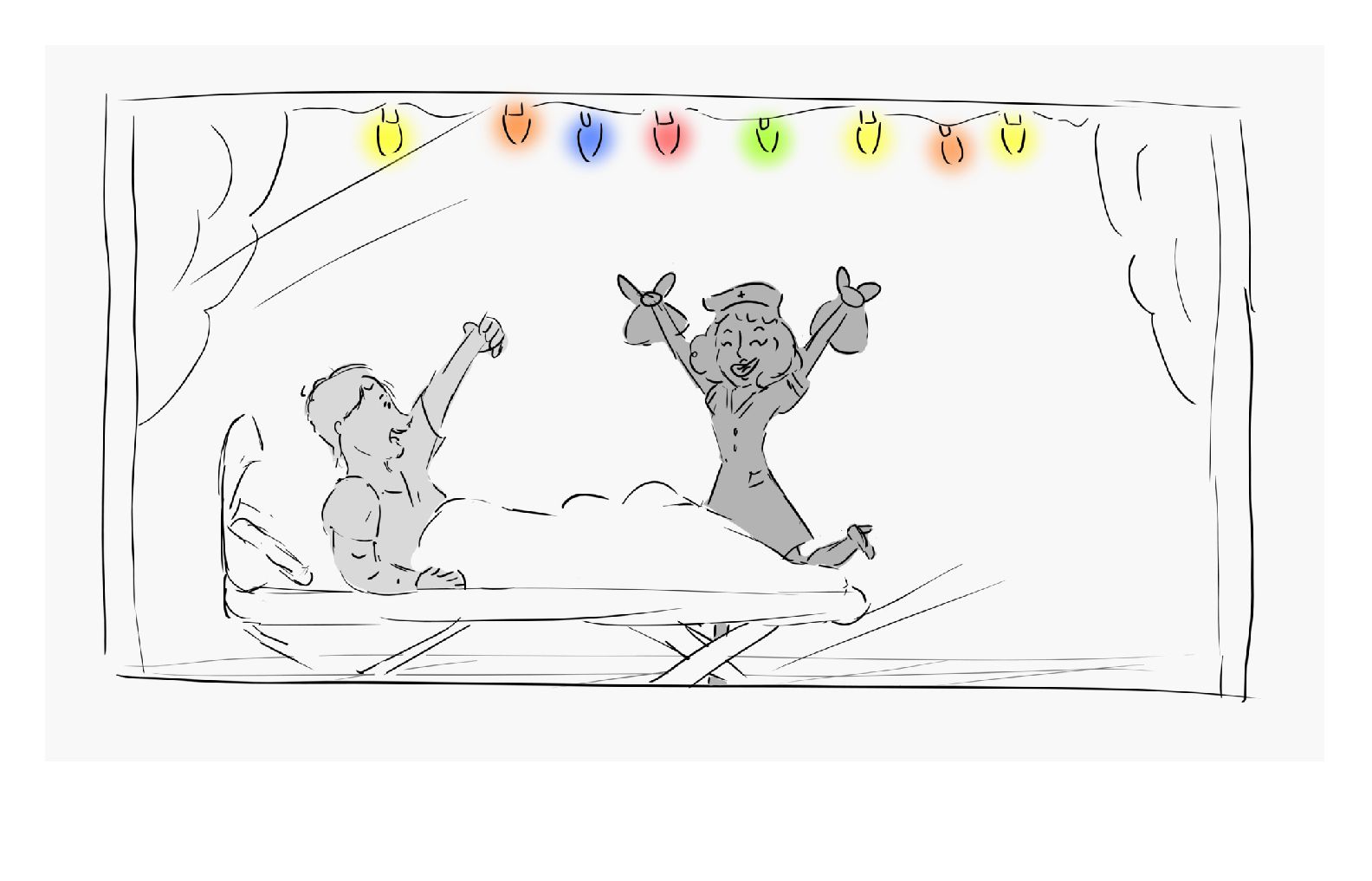 Dialog Debra: Yep, an airman, got bruised up in battle