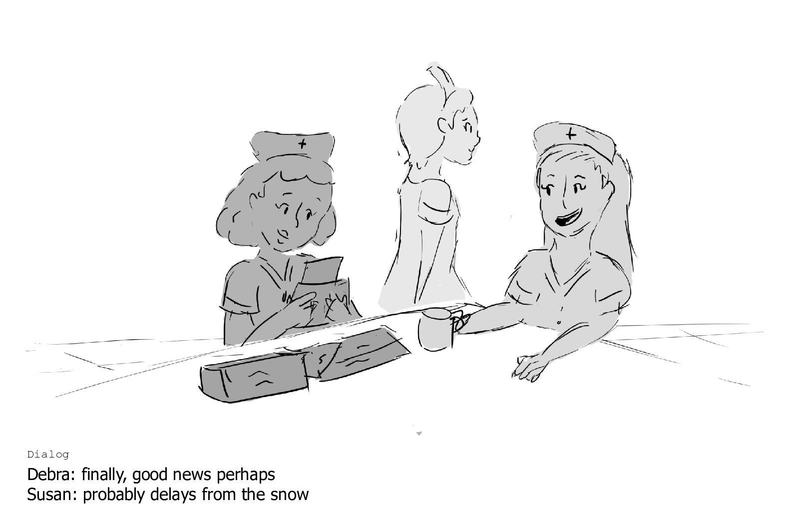 Dialog Debra: finally, good news perhaps Susan: probably delays from