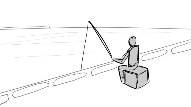 The fisherman is fishing(釣人が釣りしてる)