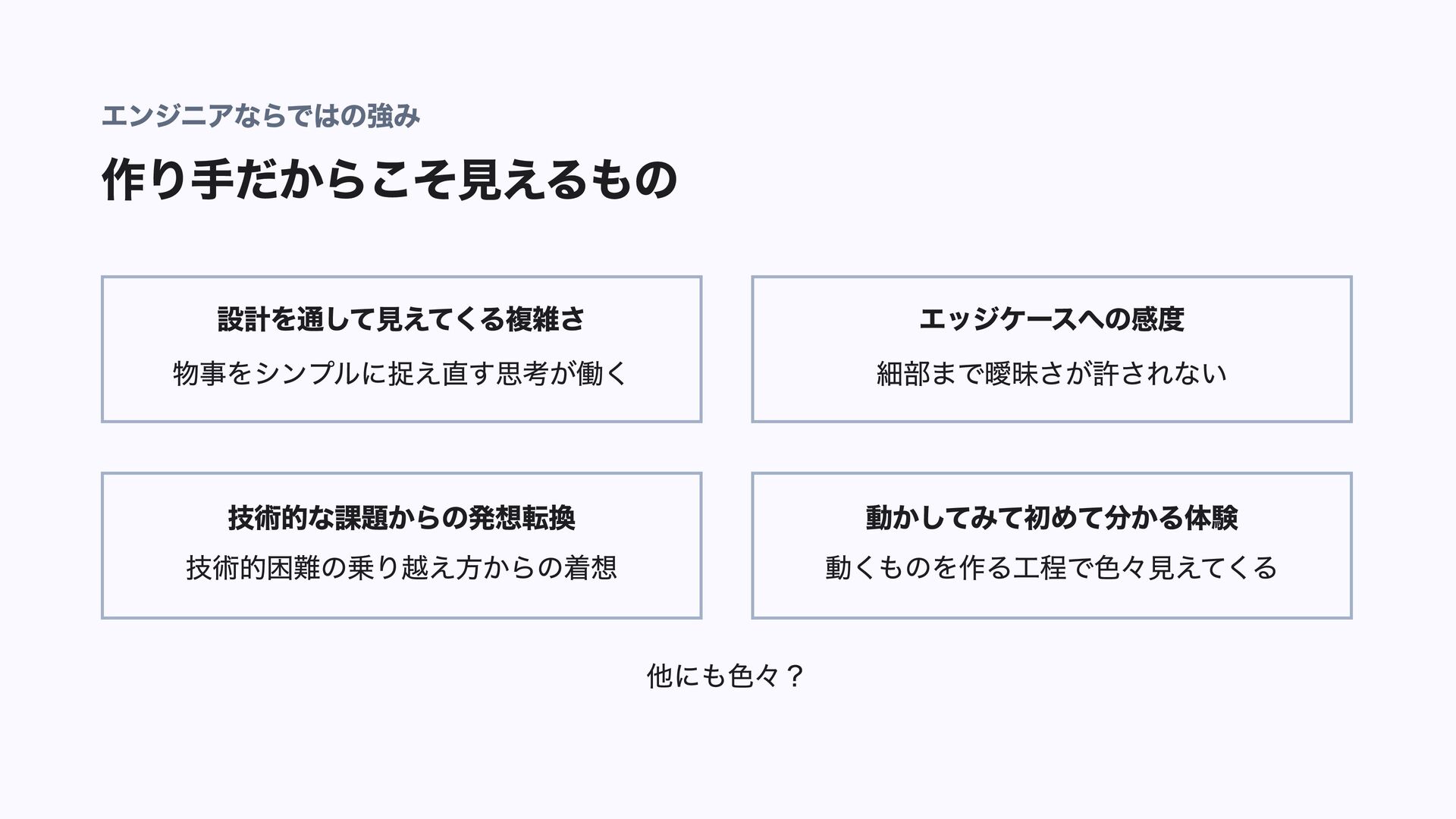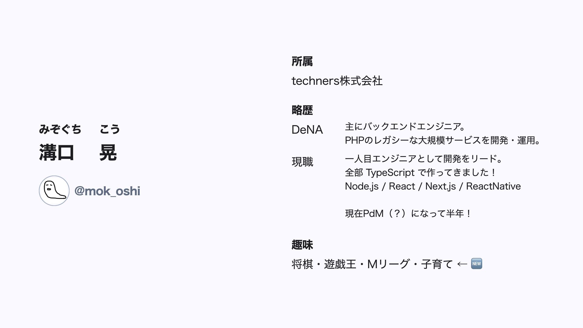 2025/11/06(木)Engineer Meets Design #2 におけるスピーカー溝口晃さん(MoD卒業生・techners株式会社・プロダクトマネージャー )による登壇資料です。 イベント概要:https://emd.connpass.com/event/370101/ 溝口さんのXアカウント:https://x.com/mok_oshi