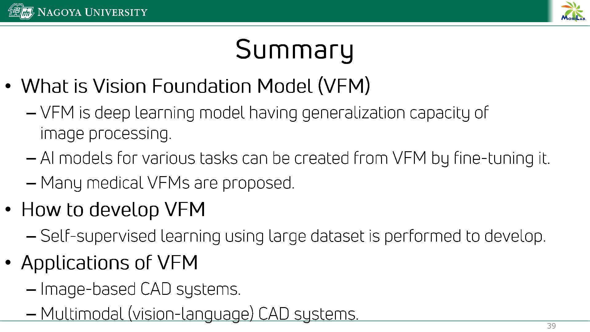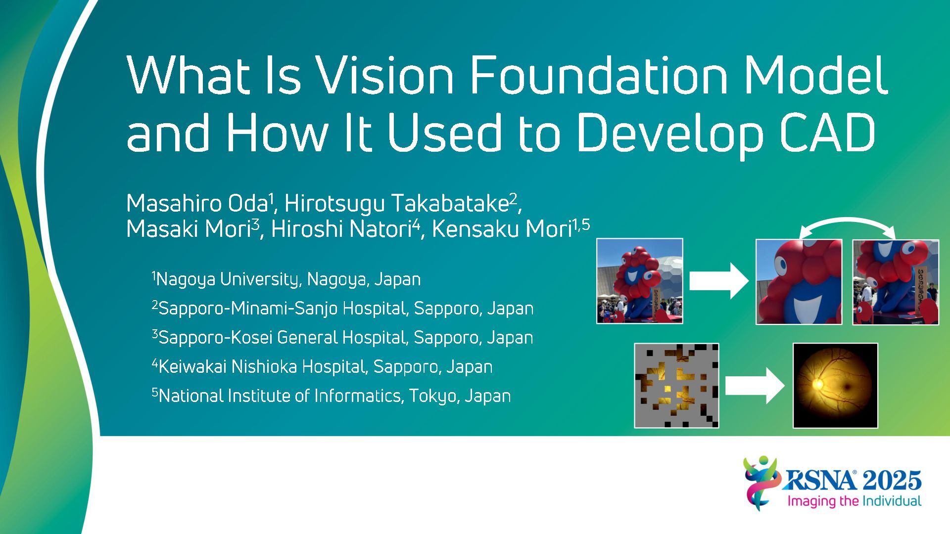 Masahiro Oda, Hirotsugu Takabatake, Masaki Mori, Hiroshi Natori, Kensaku Mori, ``What Is Vision Foundation Model and How It Used to Develop CAD,'' RSNA2025, PHEE-17, McCormick Place, Chicago (conference: 2025/11/30-12/04)
