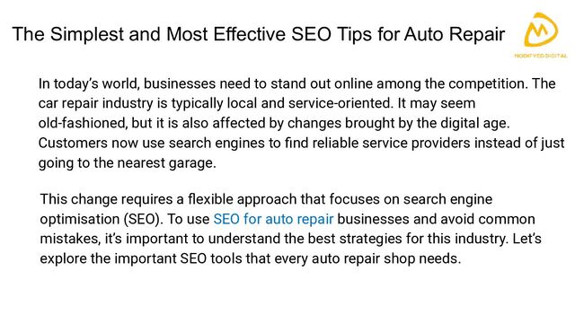 This change requires a flexible approach that focuses on search engine optimisation (SEO). To use SEO for auto repair businesses and avoid common mistakes, it’s important to understand the best strategies for this industry. Let’s explore the important SEO tools that every auto repair shop needs.