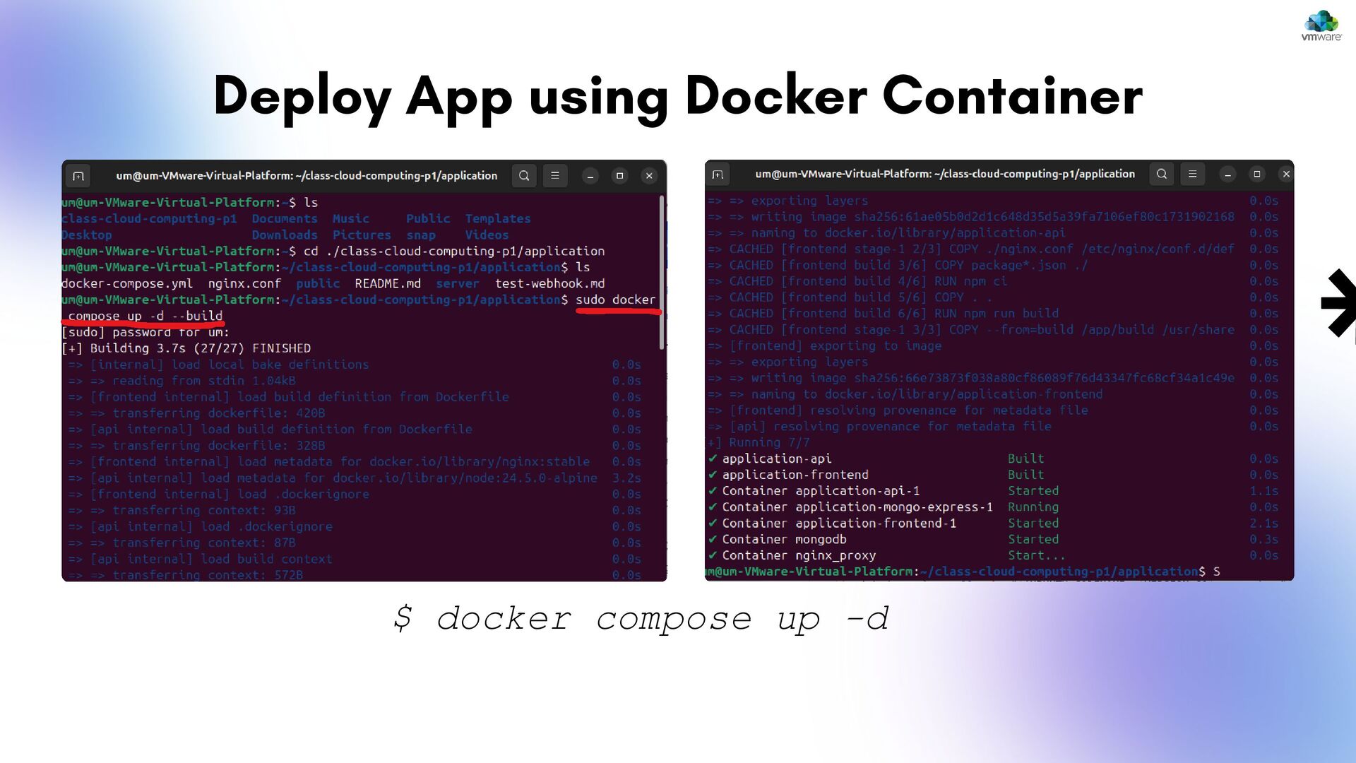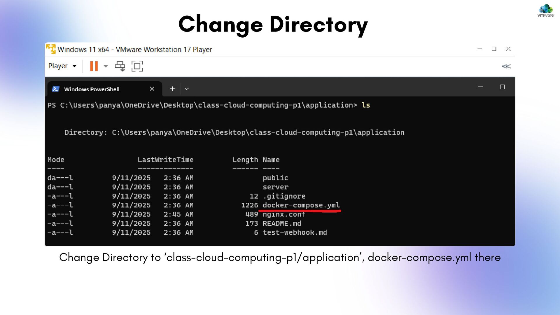 Change Directory Change Directory to ‘class-cloud-computing-p1/application’, docker-compose.yml there