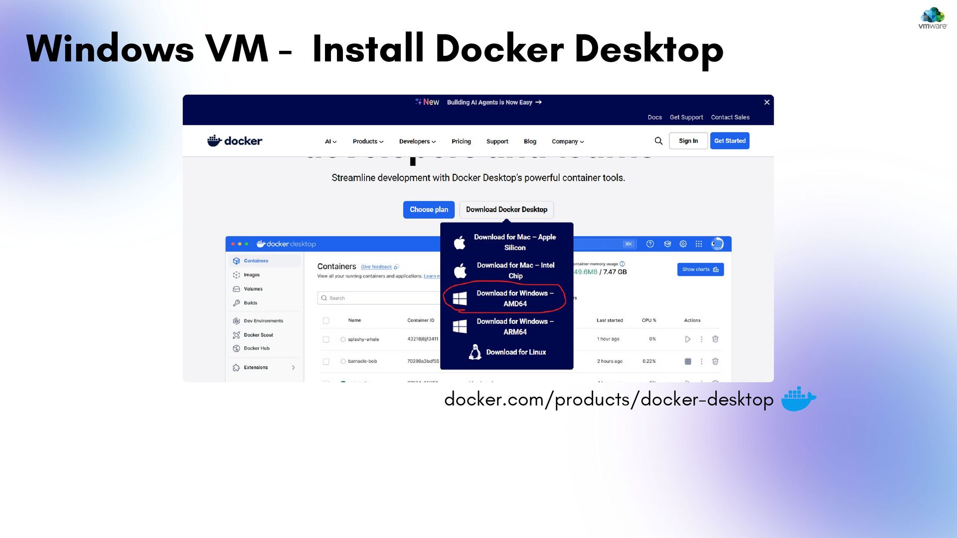 Windows VM - Install Docker Desktop docker.com/products/docker-desktop