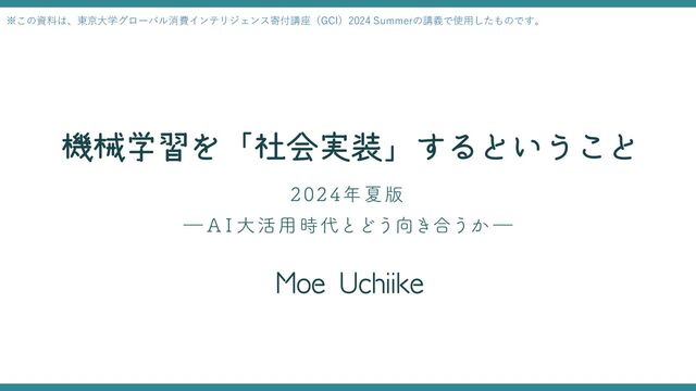 本資料は東京大学グローバル消費インテリジェンス寄付講座 (GCI) 2024 Summerのゲスト講義回 (2部構成) の第2部で、第1部ではデータサイエンティストを目指す方向けの道案内となる講義を展開しています。あわせてご覧ください。