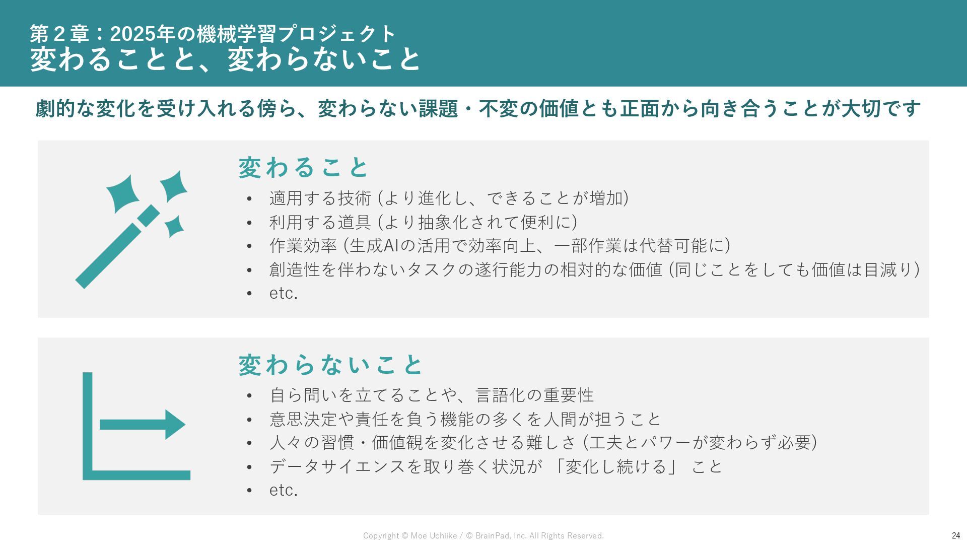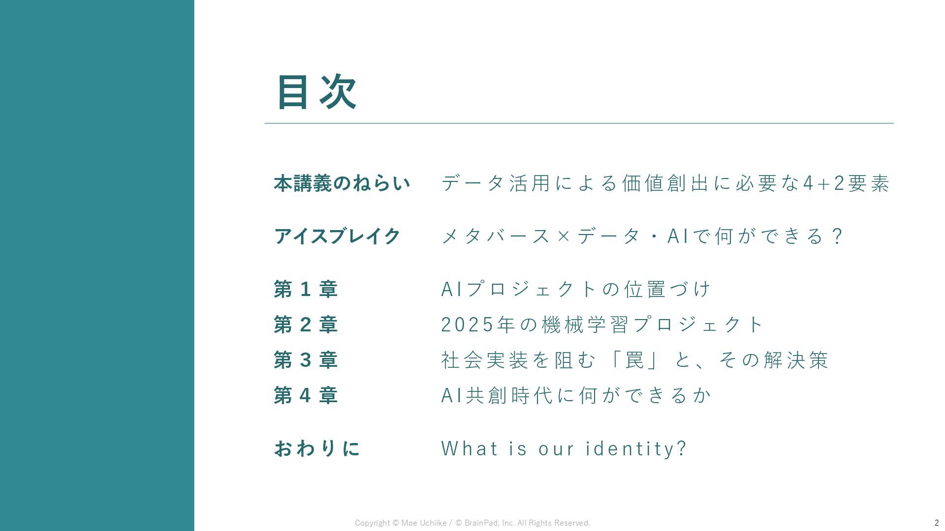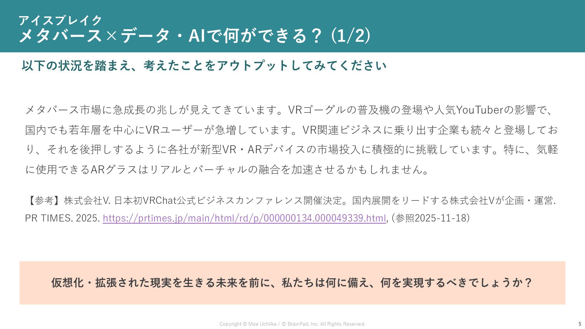 機械学習を「社会実装」する際に待ち受けている罠と、その解決方法の考察 (2025年冬版) です。今回は、仮想化・拡張された現実を生きる未来を前に、私たちAI・データ活用従事者が何に備え、何を実現すべきかを問いました。