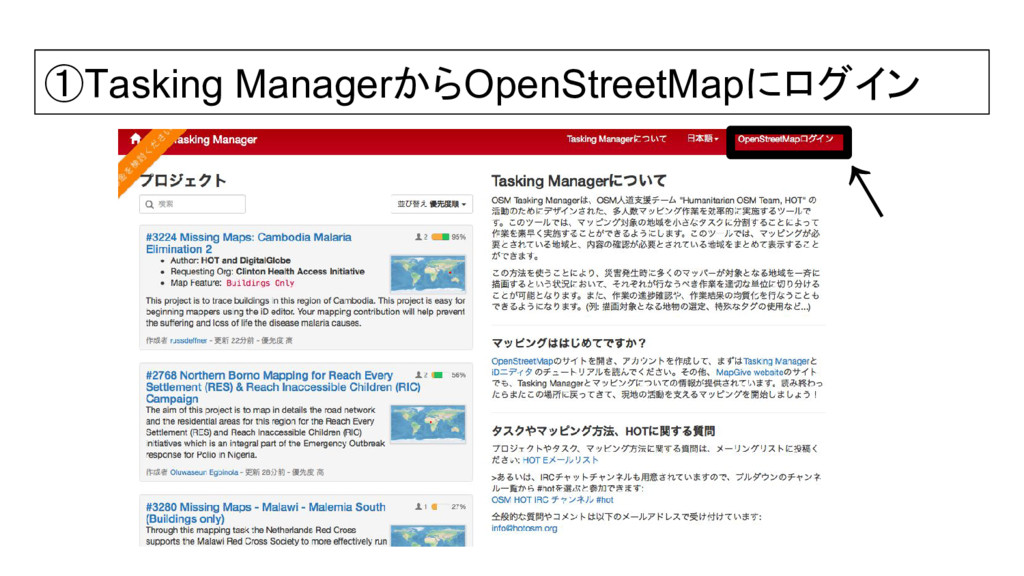 ①Tasking ManagerからOpenStreetMapにログイン ↑