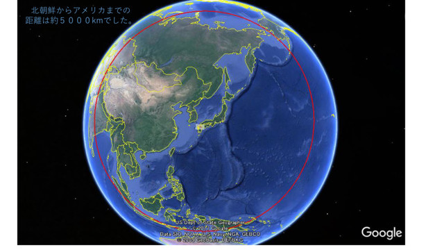 北朝鮮からアメリカまでの 距離は約5000kmでした。