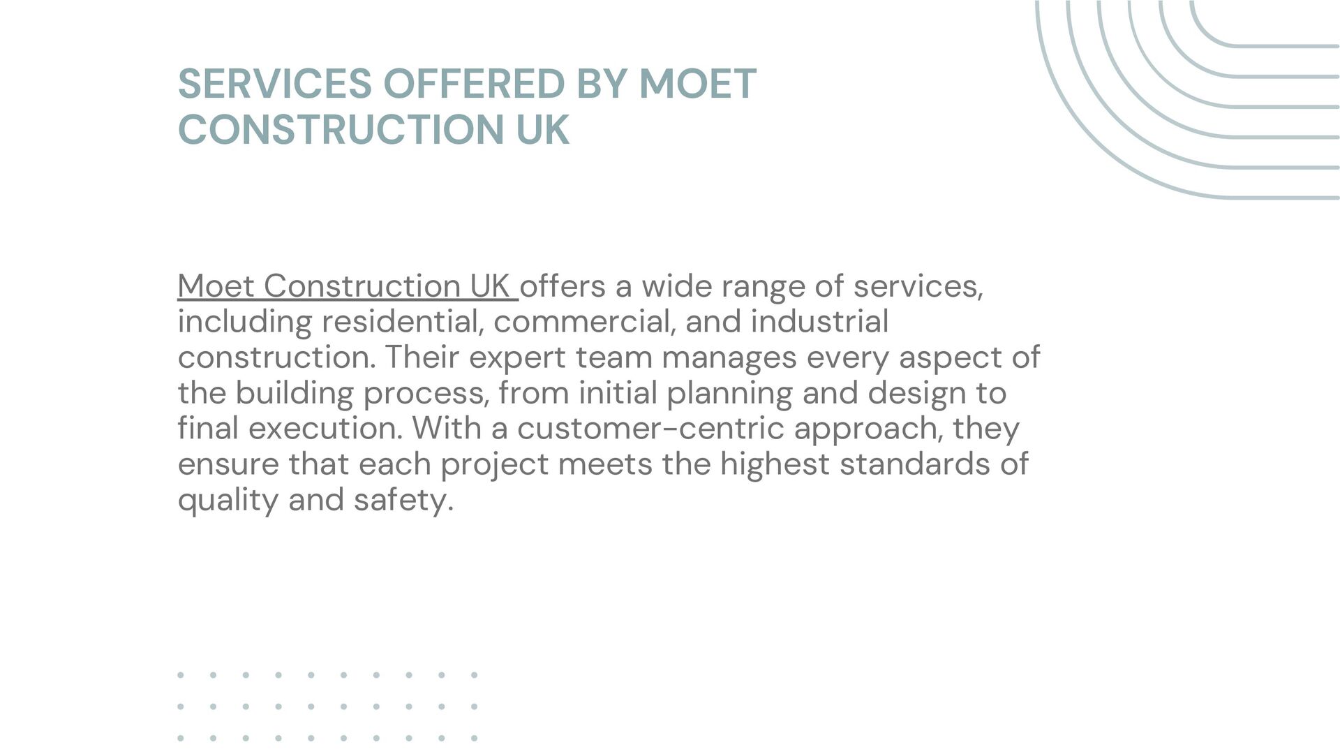 Moet Construction UK offers a wide range of services, including residential, commercial, and industrial construction. Their expert team manages every aspect of the building process, from initial planning and design to final execution. With a customer-centric approach, they ensure that each project meets the highest standards of quality and safety.