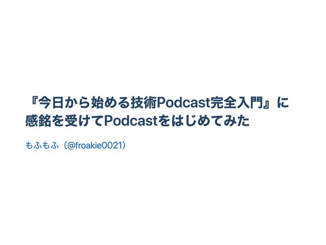 [今日から始める技術Podcast完全入門](https://booth.pm/ja/items/828339)を読んで、[ひよこなもふもふちゃんと技術同人誌.fm](https://mofumofu2.github.io/hiyokoMofu-fm/)をはじめました