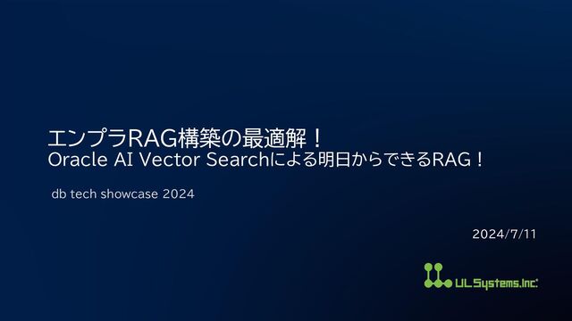本セッションでは、Oracle AI Vector Searchを用いて迅速かつ効率的にRAGを構築する方法を紹介します。