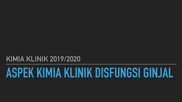 sifat biokimia metabolit dengan metode pemeriksaan ▸ Macam, cara, dan dasar pemeriksaan laboratorium terkait gangguan ginjal (LFG, sistatin, BUN, albumin, dan urinalisis) ▸ Kreatinin klirens ▸ Persiapan dan bahan pemeriksaan terkait gangguan ginjal (termasuk obat) ▸ Interpretasi dan penarikan simpulan melalui hasil pemeriksaan laboratorium terkait gangguan ginjal