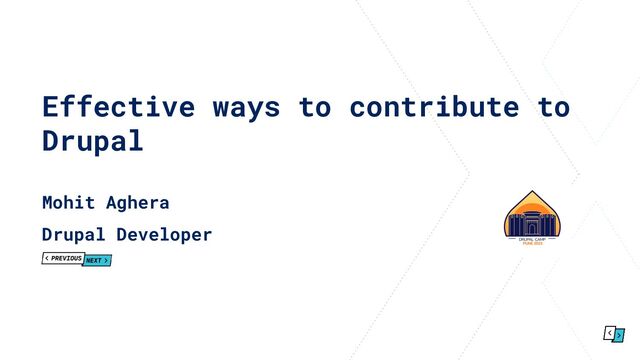 Drupal core contribution has the significant impact on your careers when you are a Drupal developer. When contributions are done in planned and constructive manner, it helps community. Spammy or incorrect contributions harms individual as well as organizations. In this session I am planning to cover various effective ways to contribute to Drupal that are quite effective and helps the community in a positive way.