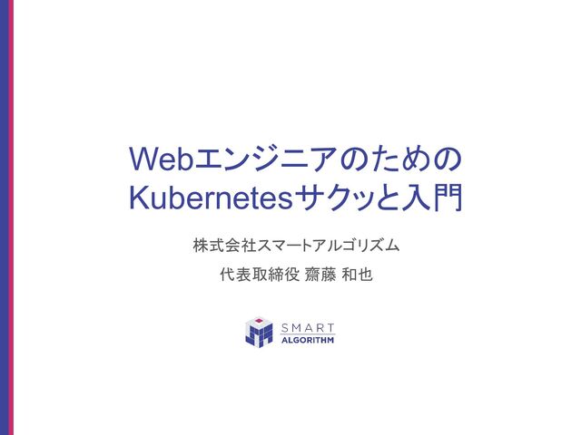 Webエンジニアのための Kubernetesサクッと入門 株式会社スマートアルゴリズム 代表取締役 齋藤 和也