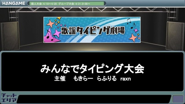 みんなでタイピング大会 主催 もきらー らふりる raxn 個人大会:4/18~4/20 グループ大会:4/21 21:00~