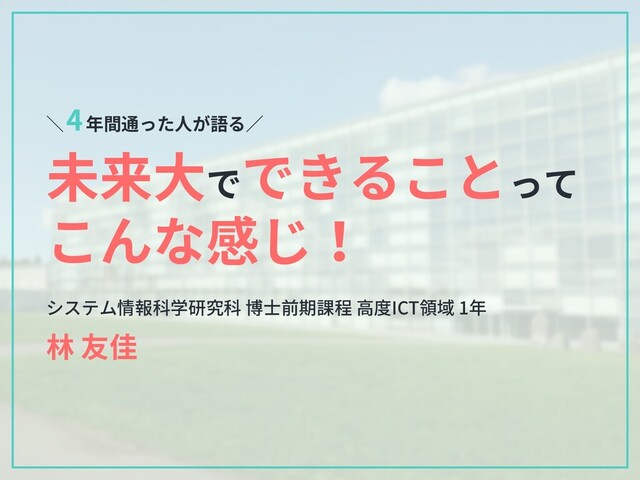 公立はこだて未来大学オンラインオープンキャンパス(2020 )のトークセッションでお話したスライドです。https://www.fun.ac.jp/open-campus/ 私が4年間でやったことのほんの一部をふんわりとまとめたものです。 オープンキャンパスに参加しそびれた高校生をTwitterで見かけたので、少しでもお役に立てれば嬉しいです。
