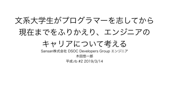 จܥେֶੜ͕ϓϩάϥϚʔΛࢤ͔ͯ͠Β ݱࡏ·ͰΛ;Γ͔͑ΓɺΤϯδχΞͷ ΩϟϦΞʹ͍ͭͯߟ͑Δ 4BOTBOגࣜձࣾ%40$%FWFMPQFST(SPVQΤϯδχΞ ా༔Ұ ฏSC