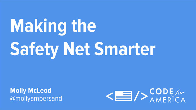 Molly is going to share challenges and opportunities for designers and developers to promote health innovation and health equity in local government. She’ll discuss the work Code for America is doing in cities across the country to make the safety net smarter.