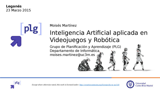 Representación del entorno (Lógica de 1er orden) Conjunto de acciones (comportamientos) Estado inicial Conjunto de metas (Objetivos) robot_at(roomba, roomB) connected(roomB, roomA, door1) close(door1) dirty(roomB) Move(roomba, roomB, roomC) 1 2