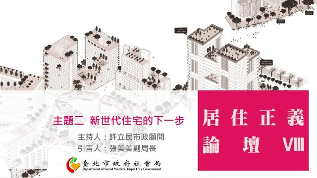 主題二 新世代住宅的下一步 主持人:許立民市政顧問 引言人:張美美副局長