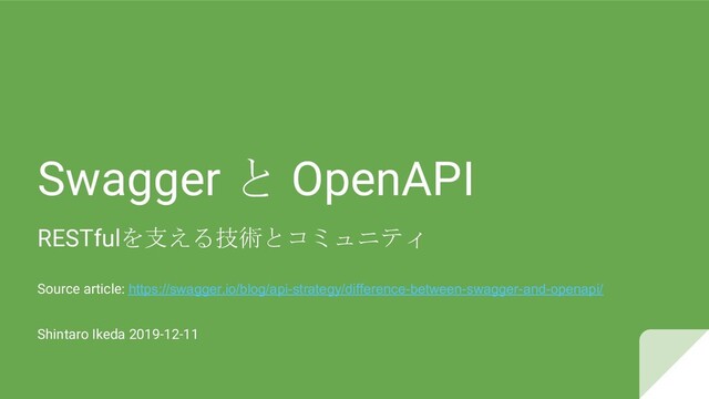 Swagger is: OpenAPI = Specification → SpecificationYaml   Swagger = Tools for implementing the specification → OpenAPIRESTful API