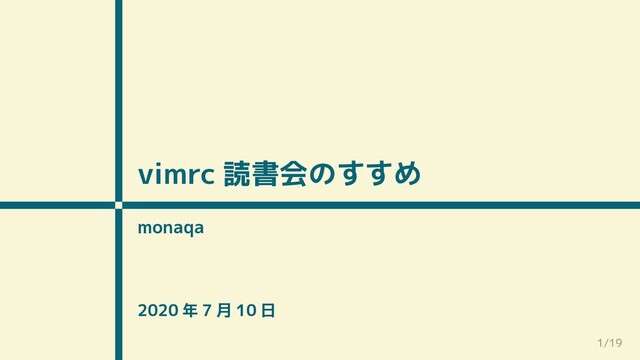 vimrc 読書会のすすめ monaqa 2020 年 7 月 10 日 1/19