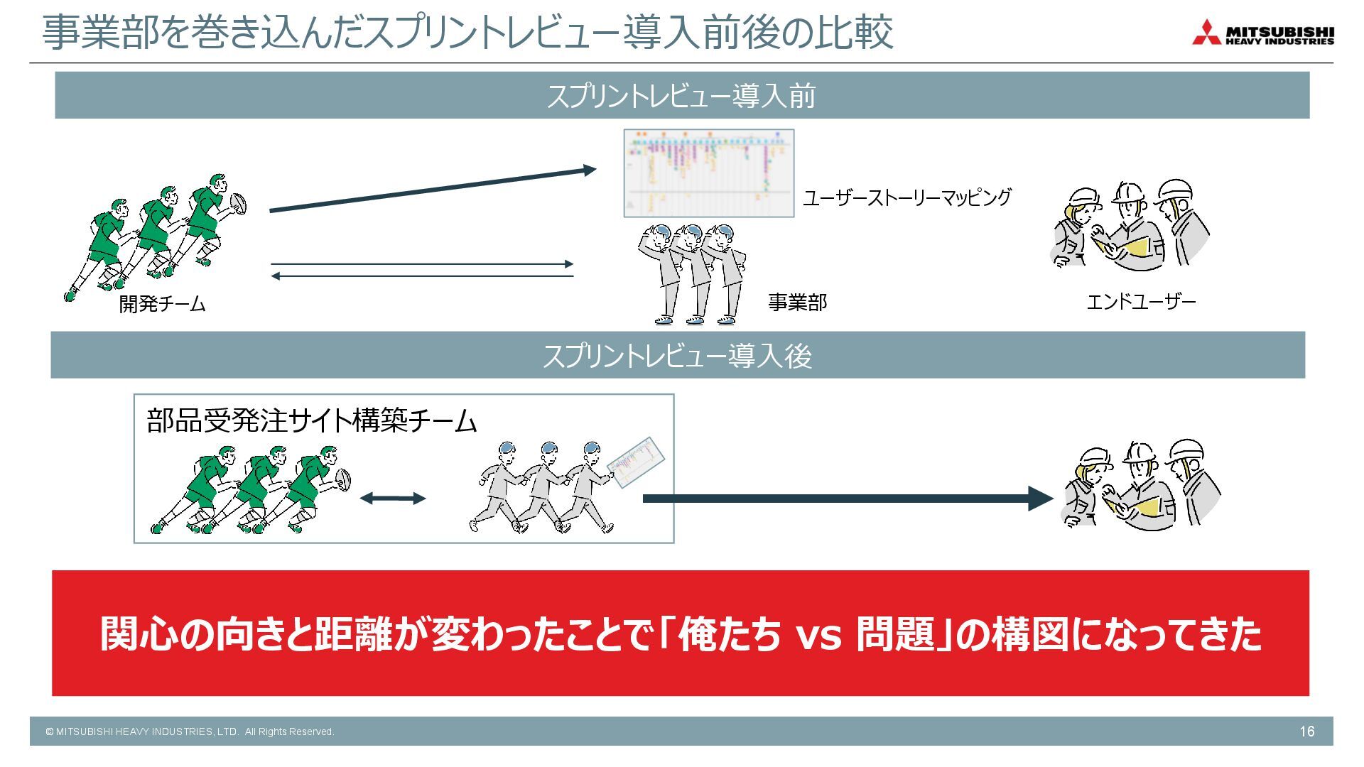 16. © MITSUBISHI HEAVY INDUSTRIES, LTD. All Rights Reserved. 16 事業部を巻き込んだスプリントレビュー導入前後の比較