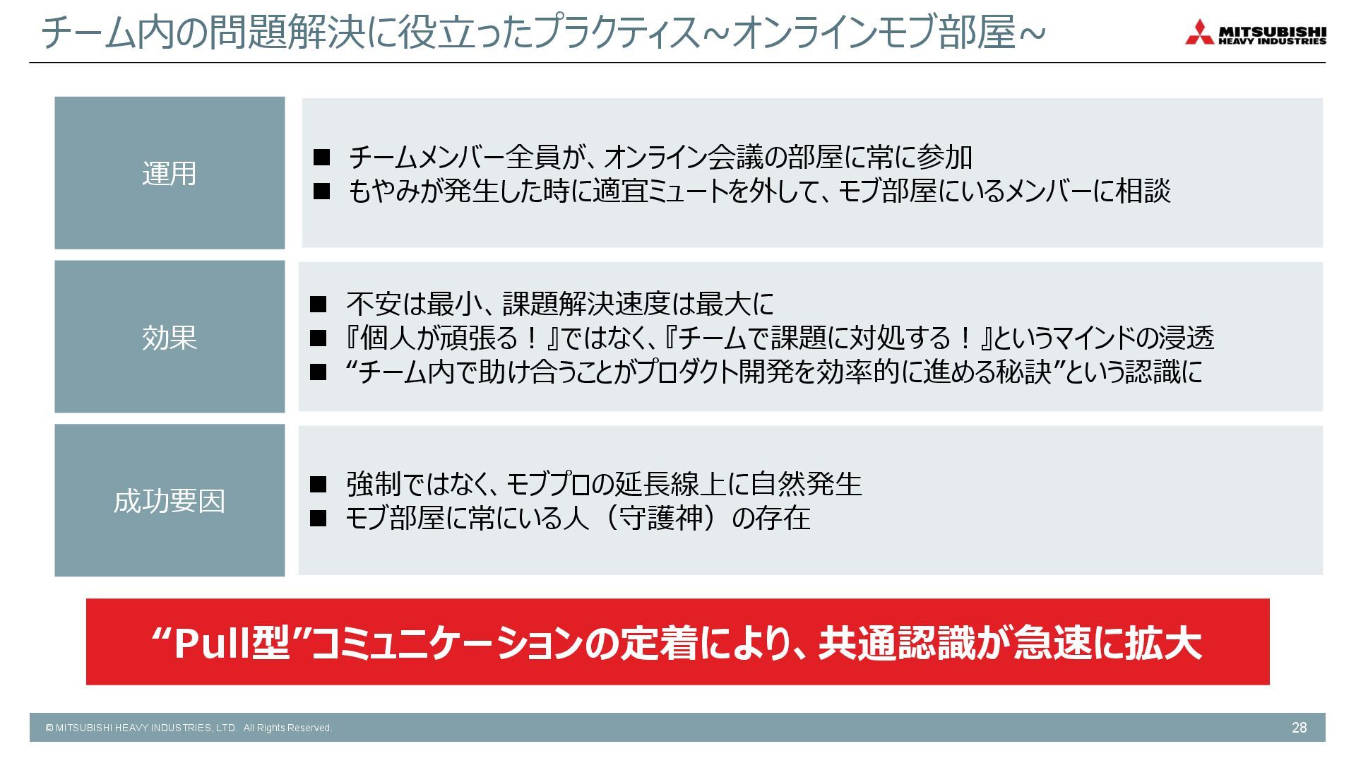 28. © MITSUBISHI HEAVY INDUSTRIES, LTD. All Rights Reserved. 28 チーム内の問題解決に役立ったプラクティス~オンラインモブ部屋~