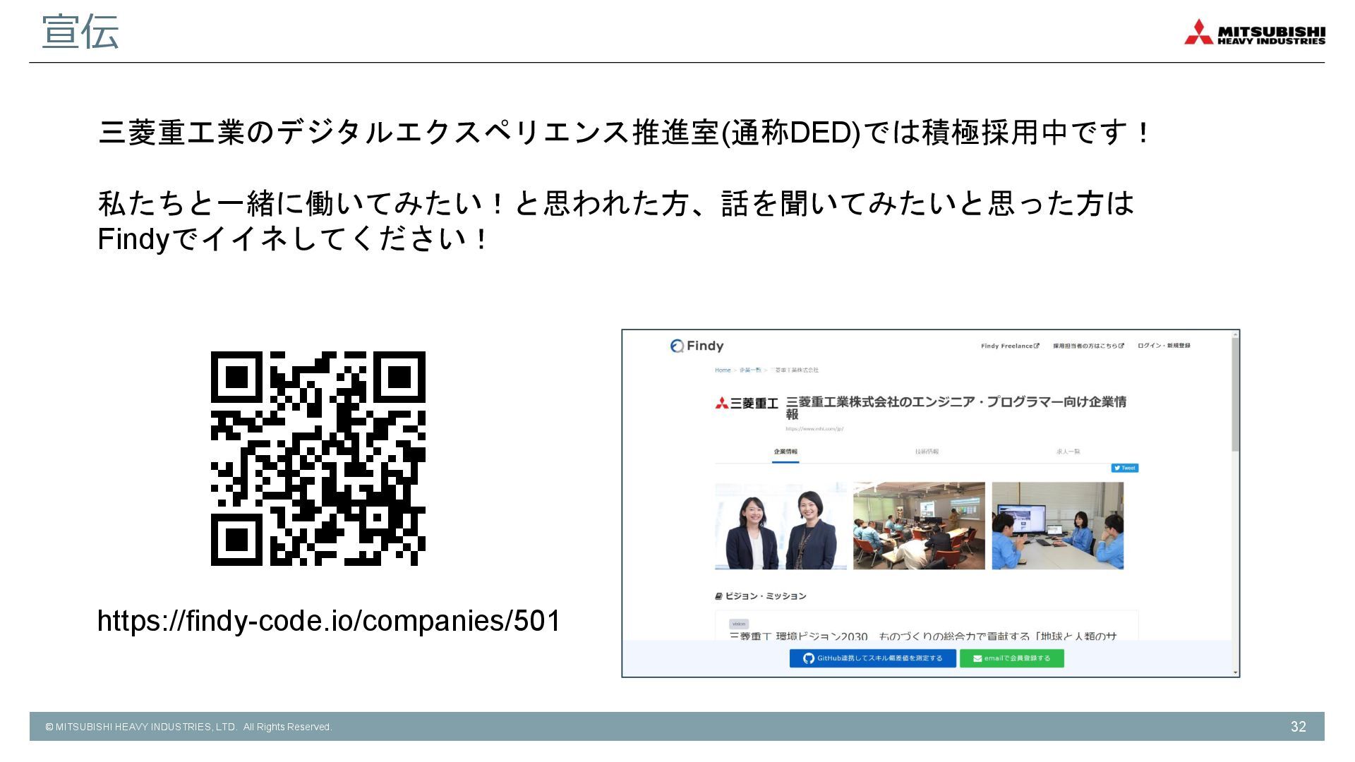 三菱重工業のデジタルエクスペリエンス推進室(通称DED)では積極採用中です! 私たちと一緒に働いてみたい!と思われた方、話を聞いてみたいと思った方は Findyでイイネしてください! https://findy-code.io/companies/501
