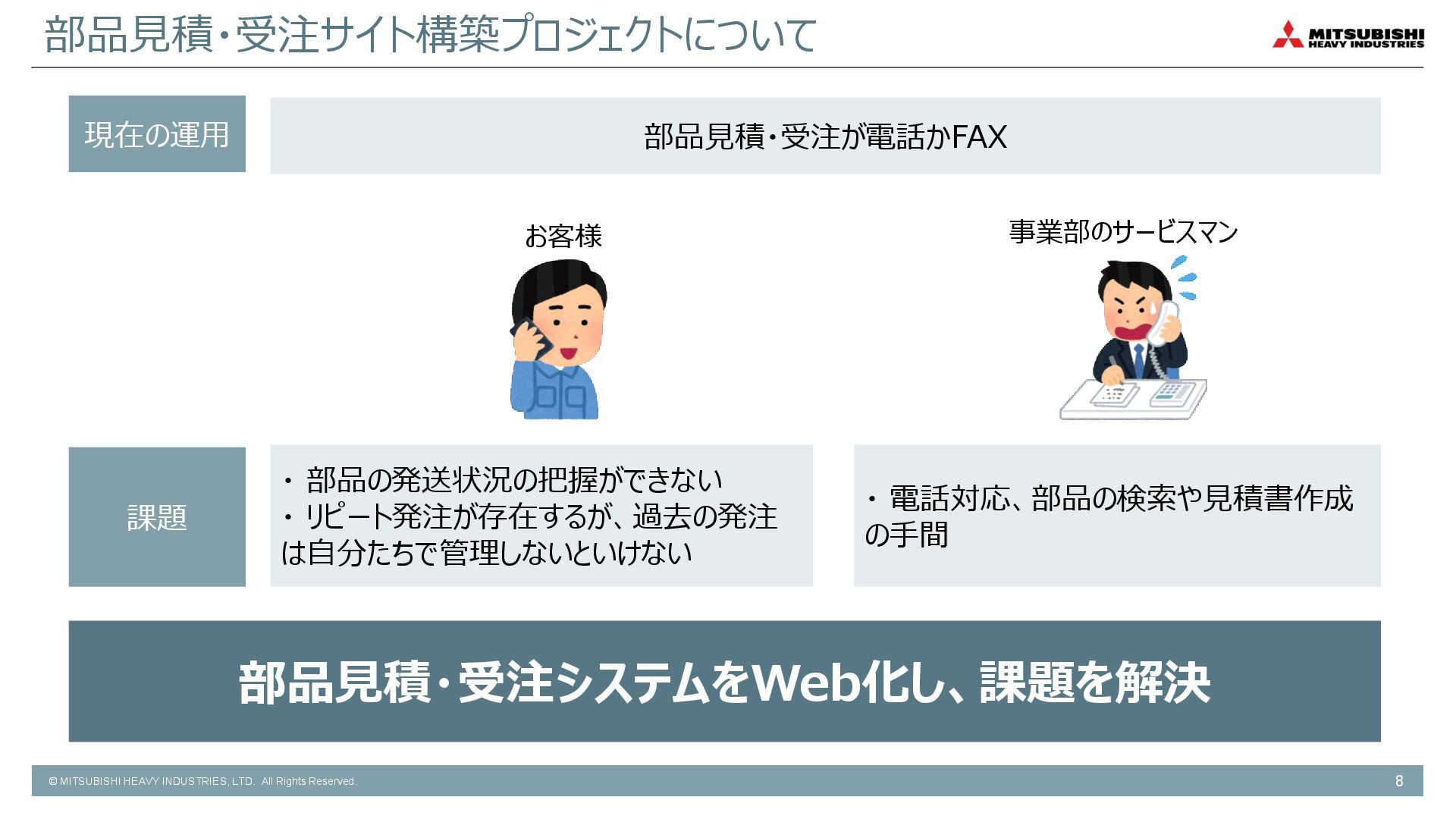8. © MITSUBISHI HEAVY INDUSTRIES, LTD. All Rights Reserved. 8 部品見積・受注サイト構築プロジェクトについて