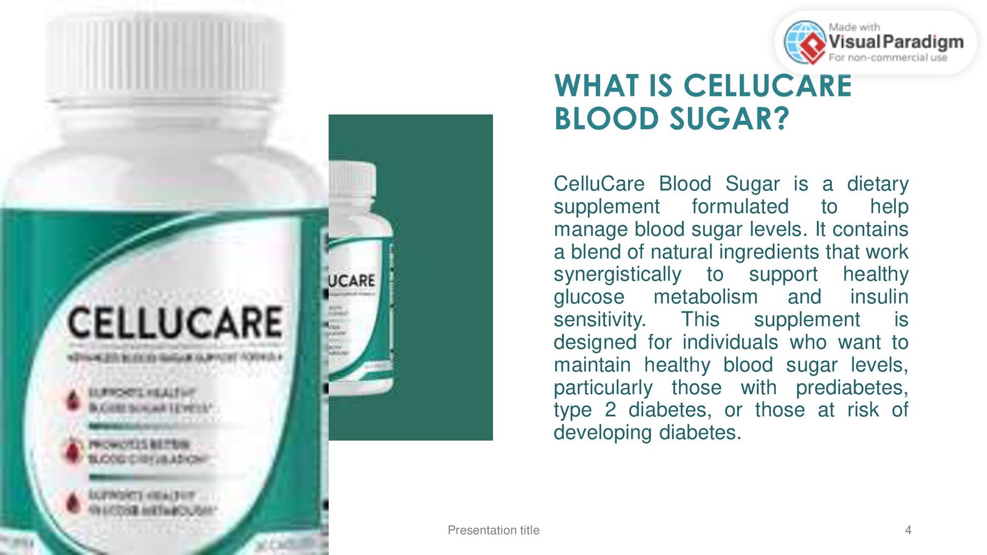 CelluCare Blood Sugar is a dietary supplement formulated to support healthy blood sugar levels. It combines various natural ingredients known for their potential benefits in blood sugar regulation. The supplement is marketed as a way to help individuals manage their glucose levels more effectively, complementing a healthy lifestyle.