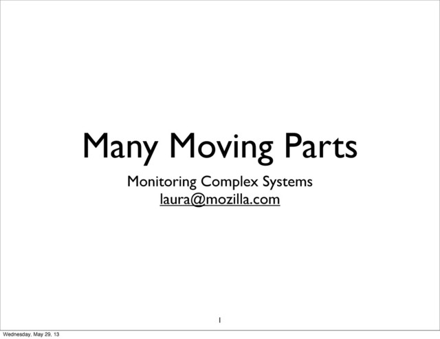 Many Moving Parts Monitoring Complex Systems (at roflscale) 2 Wednesday,