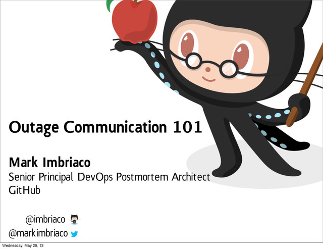 enior P rincipal D ev O ps P ostmortem A rchitect G it H ub @ imbriaco @ markimbriaco Wednesday, May 29, 13
