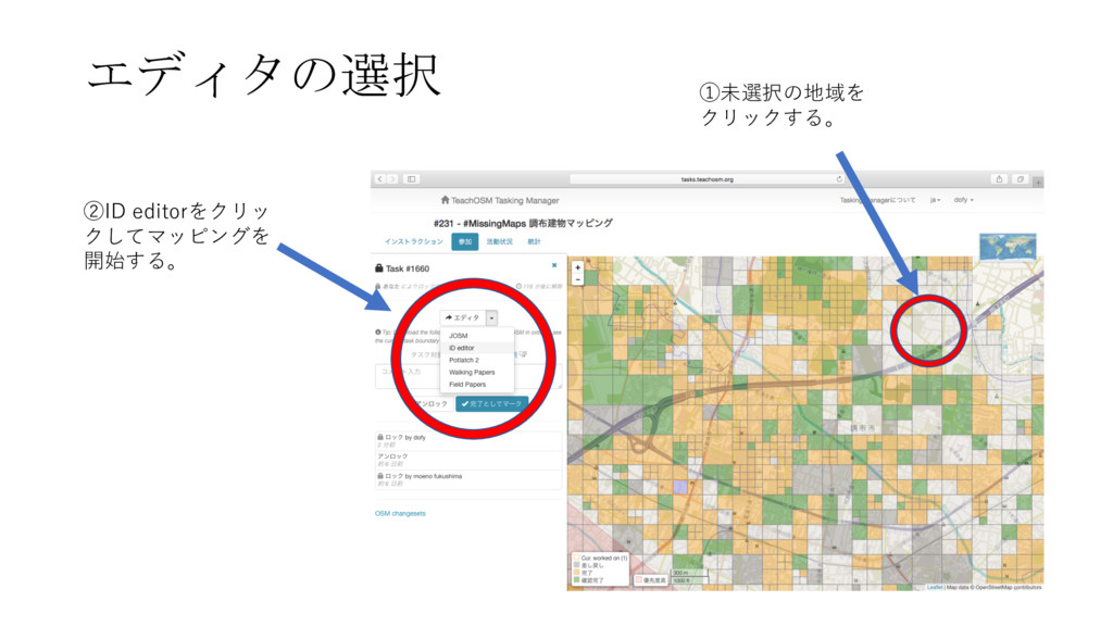 エディタの選択 ②ID editorをクリッ クしてマッピングを 開始する。 ①未選択の地域を クリックする。