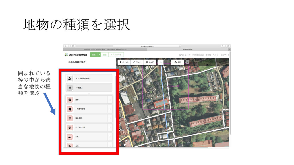 地物の種類を選択 囲まれている 枠の中から適 当な地物の種 類を選ぶ