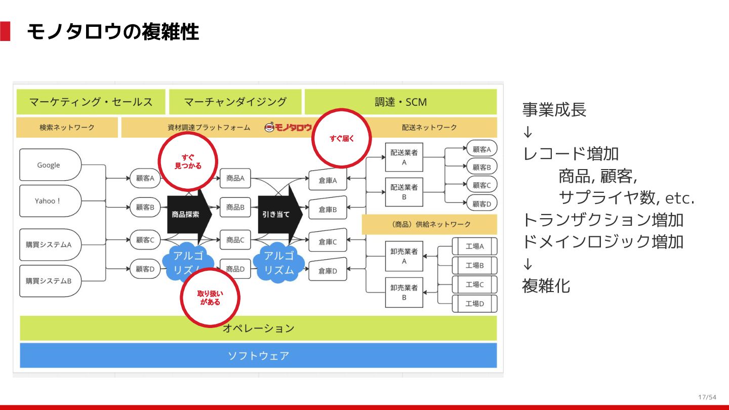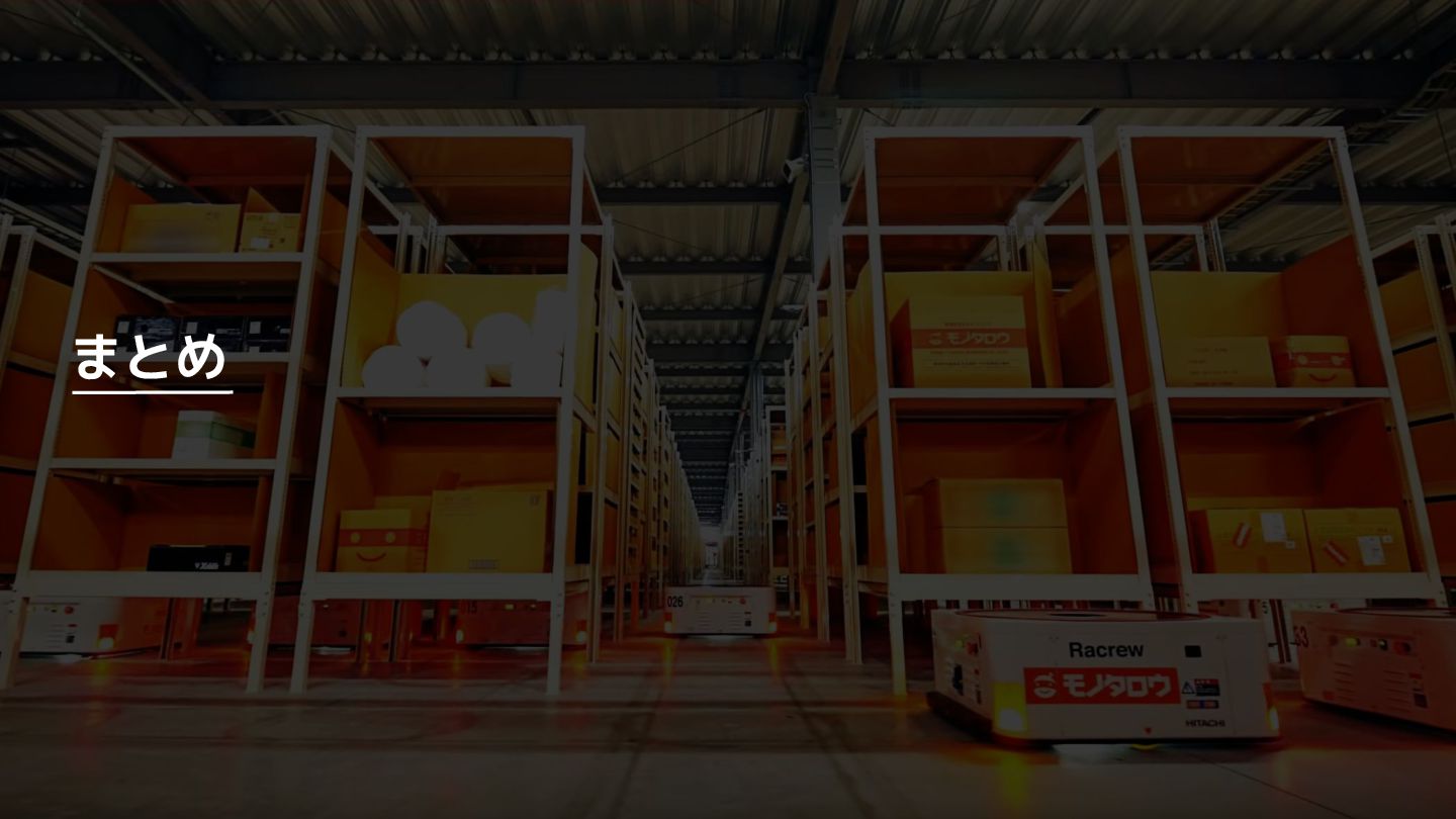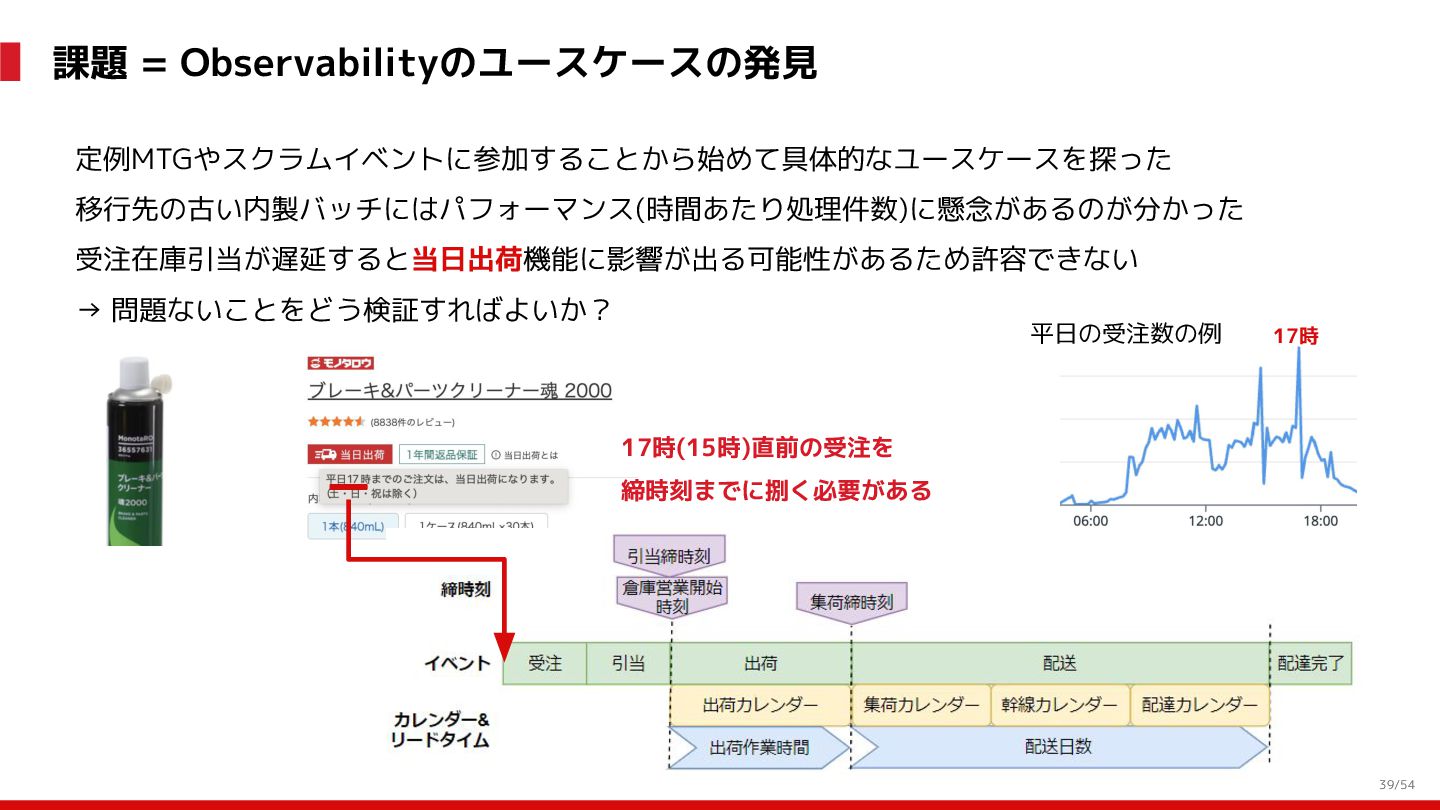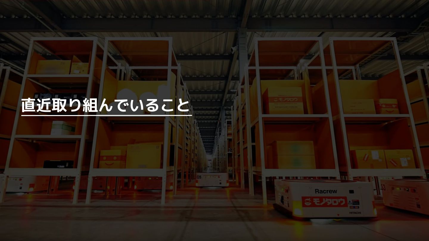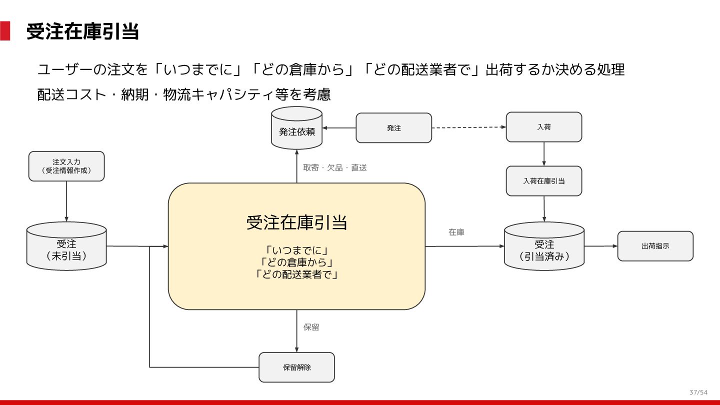 増 System:受発注, 在庫管理, etc. DS: 発注点計算, 在庫判断, etc. DS: 検索・推薦, SEO, 広告, etc. すぐ 見つかる すぐ届く サイトが複 雑で探しづ らい 物流キャパ は有限なの で全部は在 庫できない パラメータ 最適化 パラメータ 最適化 取り扱い がある 購買行動 品揃え改善 商品採用へ (省略) 受 発 注 ・ 入 出 荷 実 績 どの商品やユーザーに何を適用するかを最適化 Systemは最適化に使える選択肢を用意 需要予測を元にした 在庫判定・発注点など が正しく基幹システム に反映されているか? 手動で修正した場合な ども追跡できるか? 基幹システムだけでなく Supply Chain Managementの部門も含 めて定期的に議論中 Est. 12:36