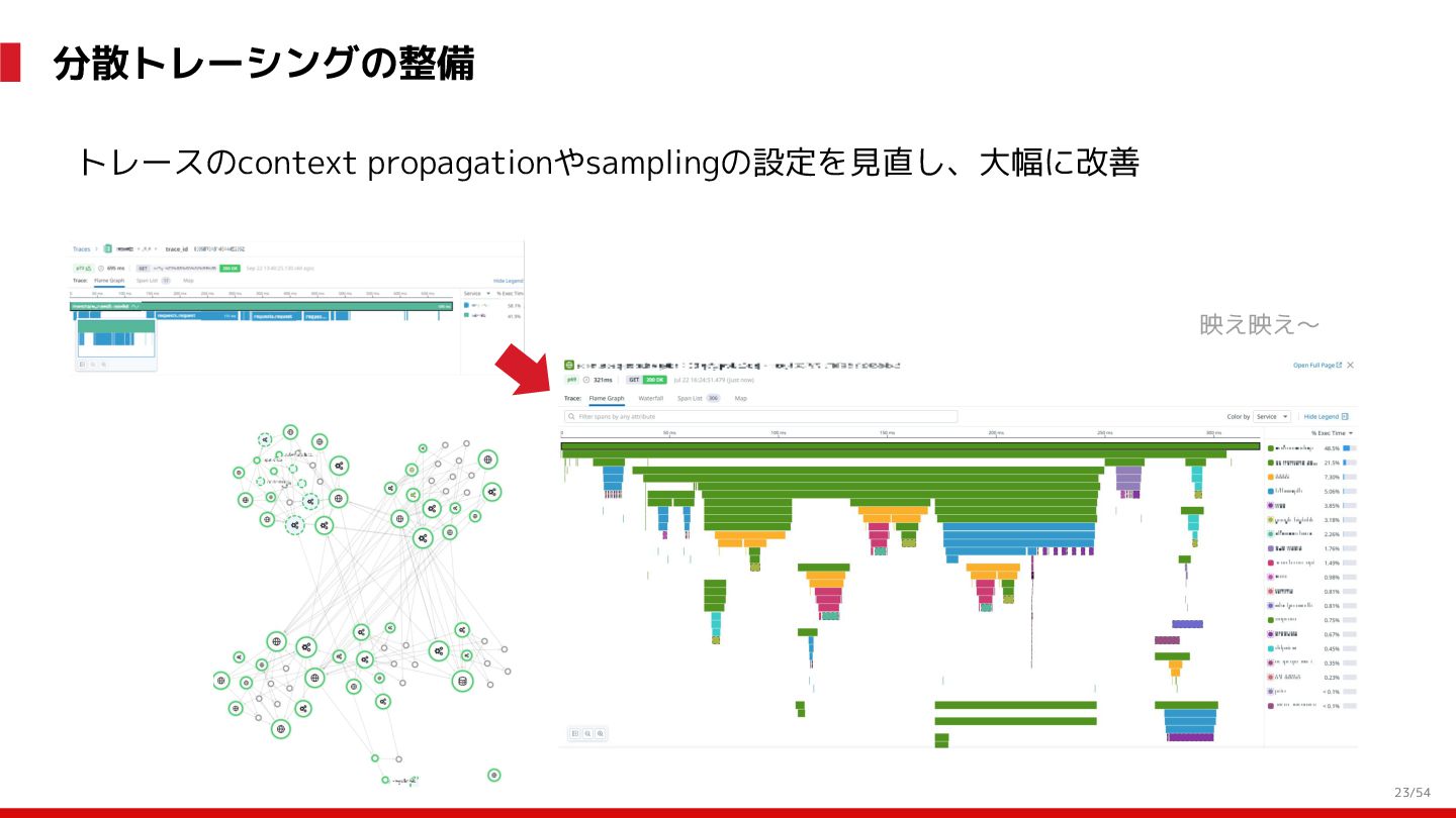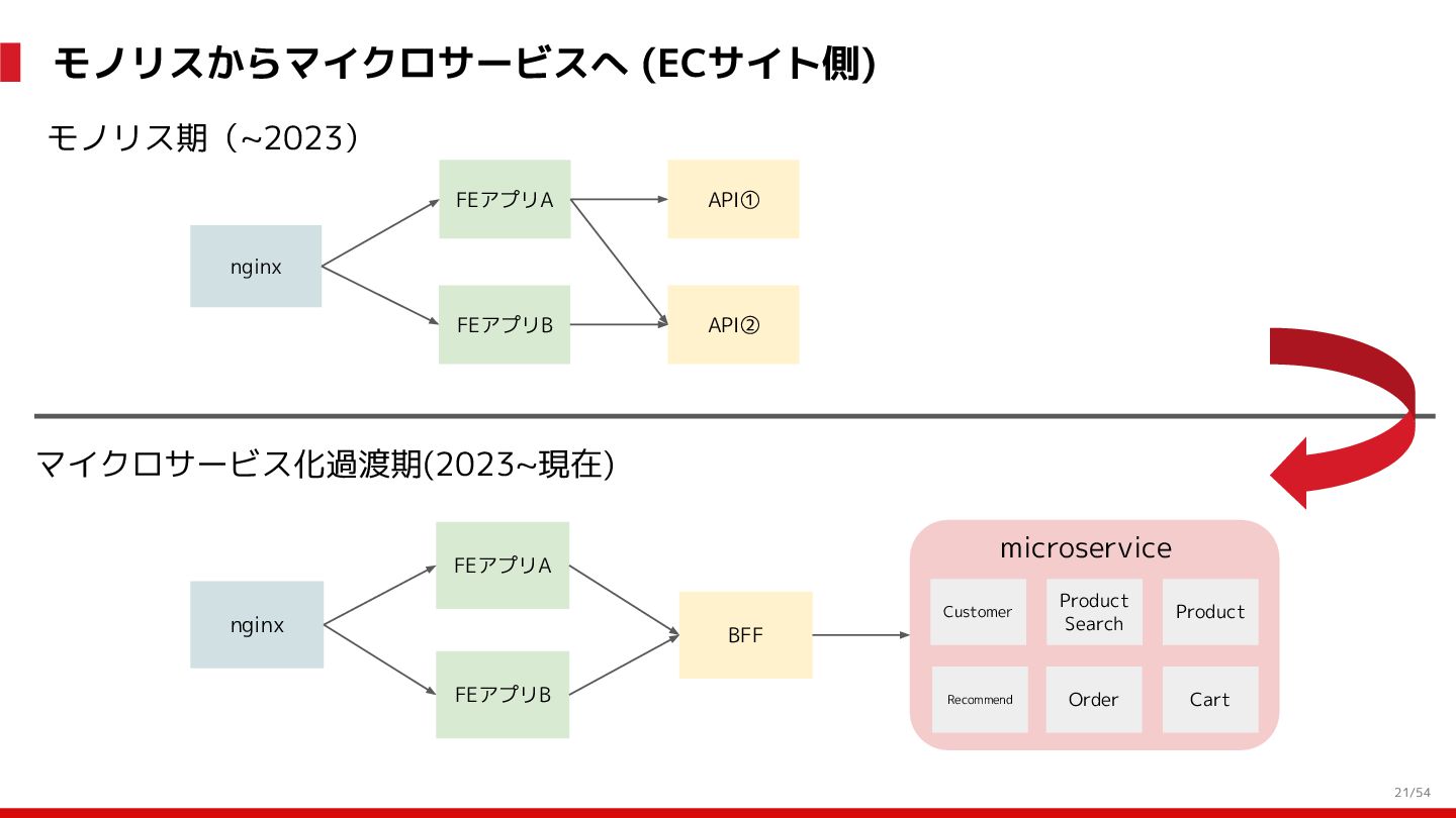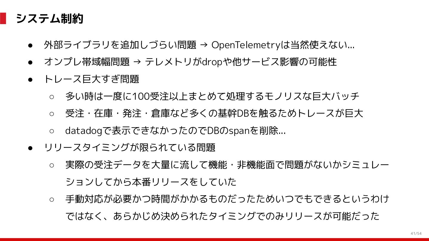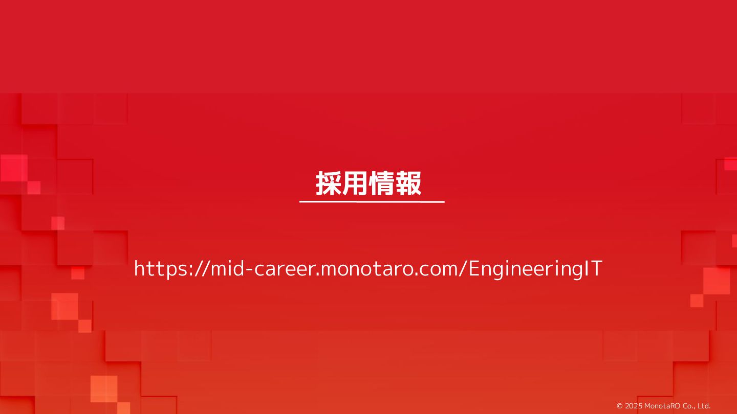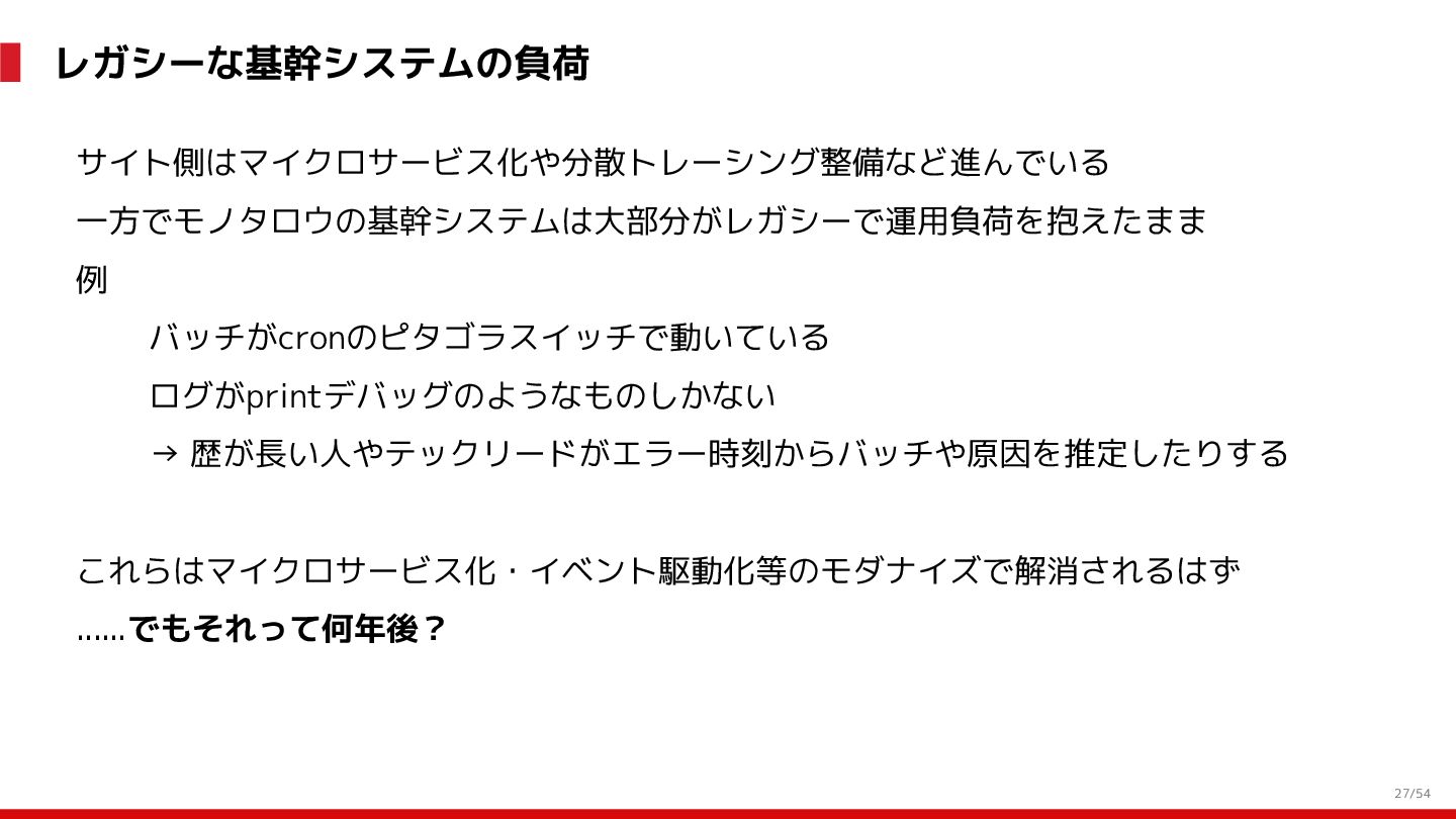 増 System:受発注, 在庫管理, etc. DS: 発注点計算, 在庫判断, etc. DS: 検索・推薦, SEO, 広告, etc. すぐ 見つかる すぐ届く サイトが複 雑で探しづ らい 物流キャパ は有限なの で全部は在 庫できない パラメータ 最適化 パラメータ 最適化 取り扱い がある 購買行動 品揃え改善 商品採用へ (省略) 受 発 注 ・ 入 出 荷 実 績 どの商品やユーザーに何を適用するかを最適化 Systemは最適化に使える選択肢を用意 需要予測を元にした 在庫判定・発注点など が正しく基幹システム に反映されているか? 手動で修正した場合な ども追跡できるか? 基幹システムだけでなく Supply Chain Managementの部門も含 めて定期的に議論中 Est. 12:36