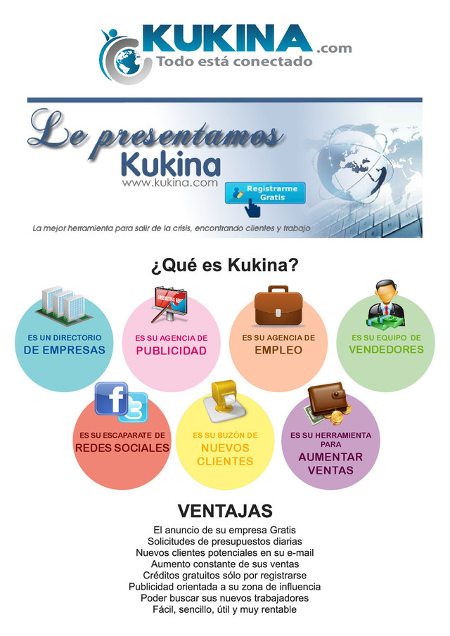 SU AGENCIA DE PUBLICIDAD ES SU ESCAPARATE DE REDES SOCIALES ES SU BUZÓN DE NUEVOS CLIENTES ES SU HERRAMIENTA PARA AUMENTAR VENTAS ES SU AGENCIA DE EMPLEO ES SU EQUIPO DE VENDEDORES http://www.kukina.com/empresas/registro/paso1.aspx