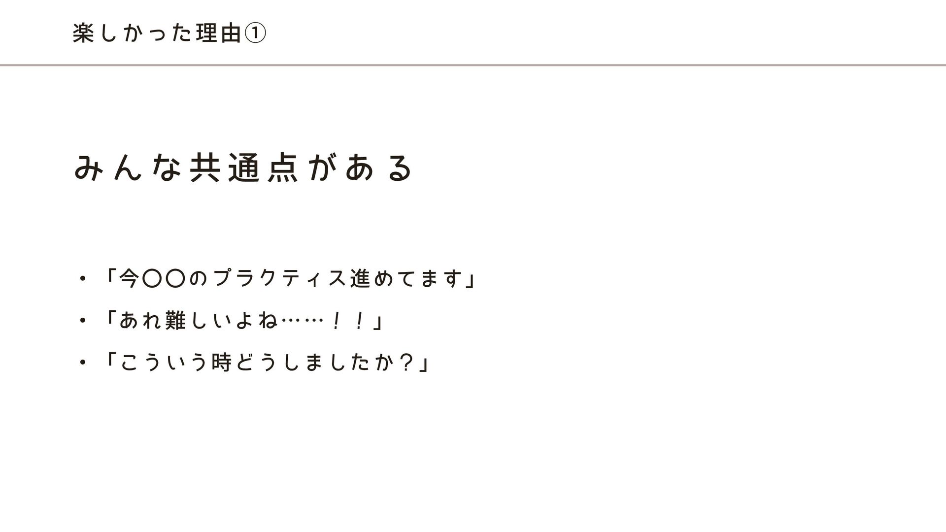 ・「今〇〇のプラクティス進めてます」 ・「あれ難しいよね……!!」 ・「こういう時どうしましたか?」