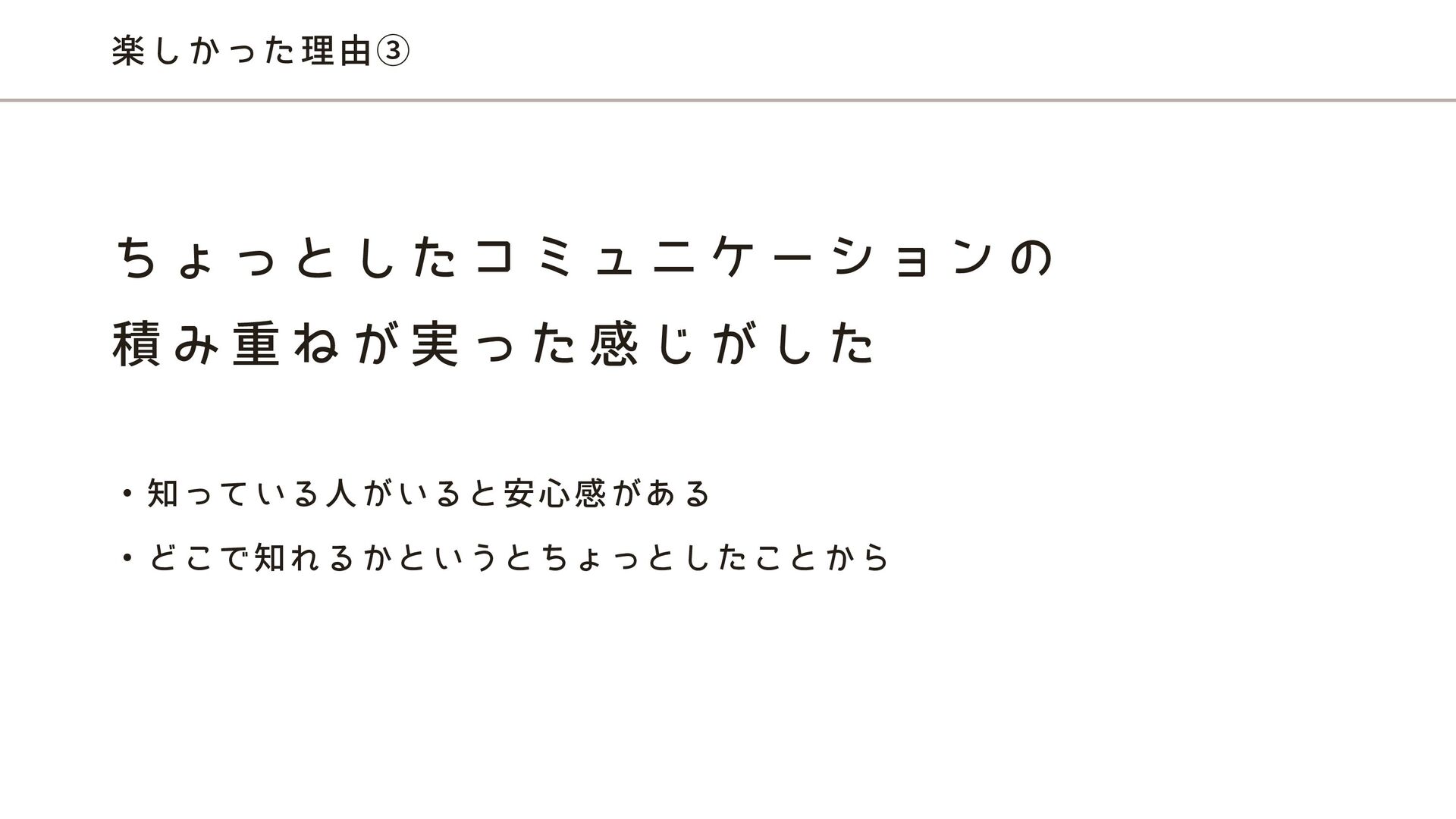 楽しかった理由③ ち ょ っ と し た コ ミ ュ