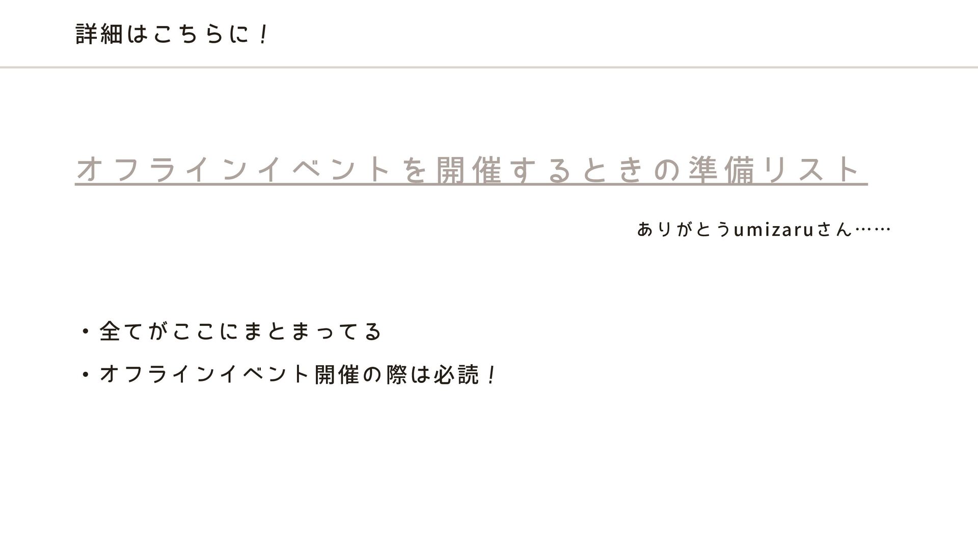 詳細はこちらに! ・全てがここにまとまってる ・オフラインイベント開催の際は必読! オ フ ラ イ ン イ ベ