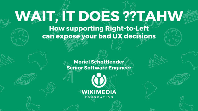 This lecture will focus on the common challenges involved in supporting i18n in general and Right-to-Left in particular when building user interfaces. It will showcase examples of how, by working towards supporting solutions for these challenges, we can uncover underlying problems with the interface in general, and how we can fix them. Fixing those issues doesn't just mean supporting the important goal of making your software reachable and inclusive - it also means making your code stronger, and your user experience smoother.