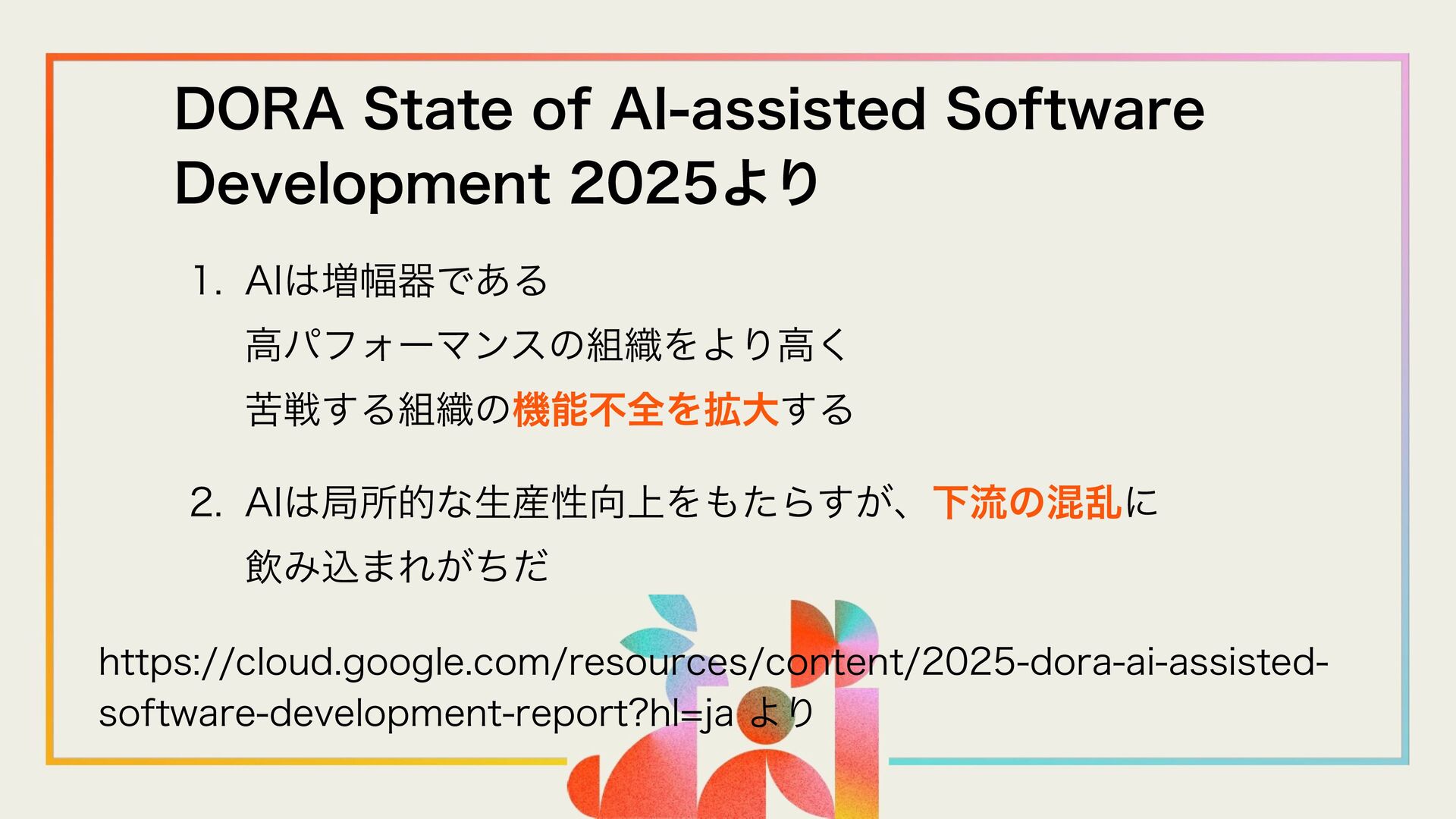 ϓϥοτϑΥʔϜ৫Λ࣋ͭҎ্Ͱ"*ಋೖࡁΈʢͨͩ͠ɺ ׂͷ৫ίʔυੜΛ৴པ͍ͯ͠ͳ͍ʣ "*ʹΑͬͯίʔυͷੜमਖ਼্͕ΔҰํɺϨϏϡʔɾ ςετɾ࿈ܞମ੍͕͍͔ͭͳ͍ͱɺϦϦʔε࣭͕༳Β͙ %03"4UBUFPG"*BTTJTUFE4PGUXBSF %FWFMPQNFOUΑΓ IUUQTDMPVEHPPHMFDPNSFTPVSDFTDPOUFOUEPSBBJBTTJTUFE TPGUXBSFEFWFMPQNFOUSFQPSU
