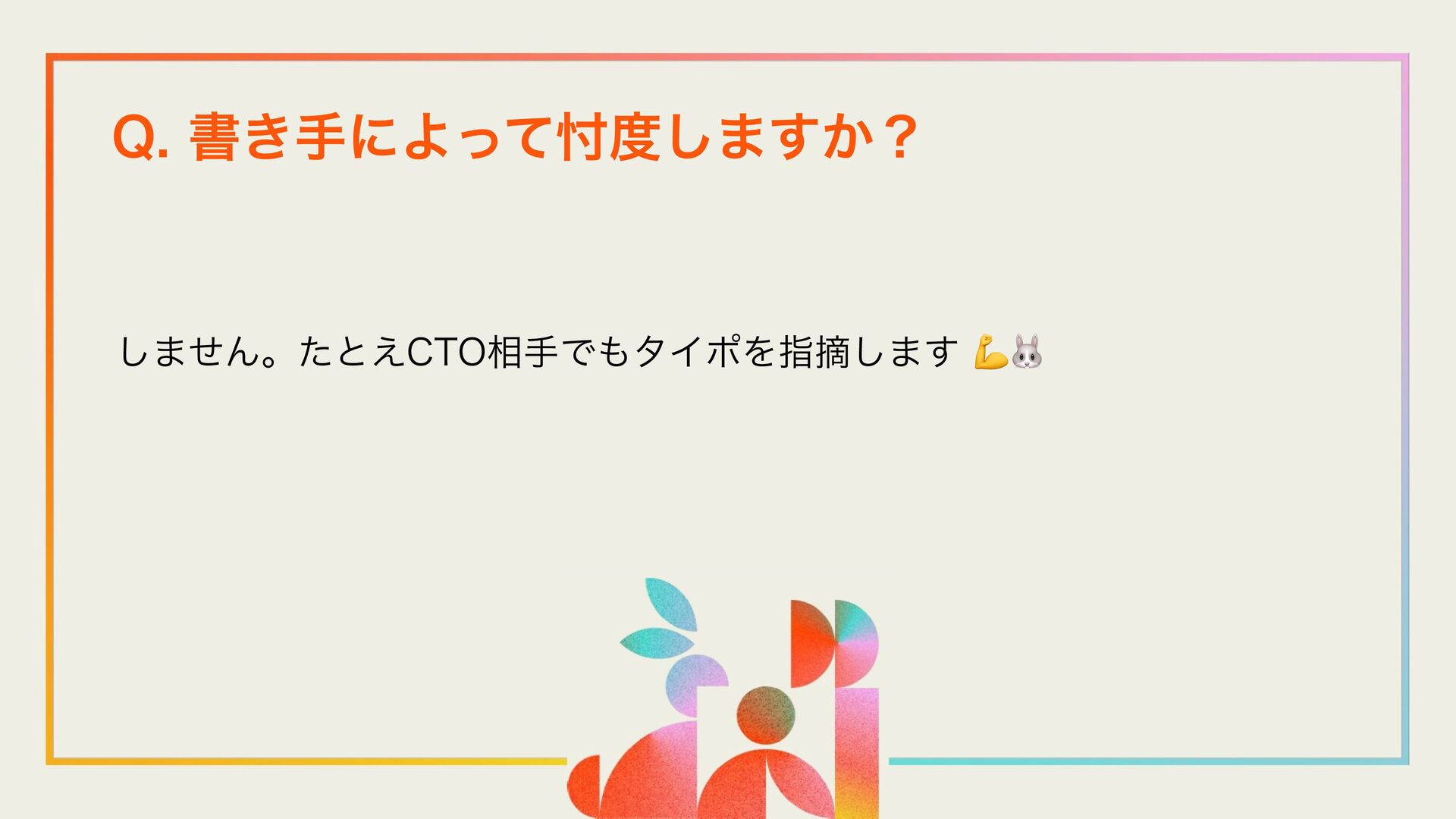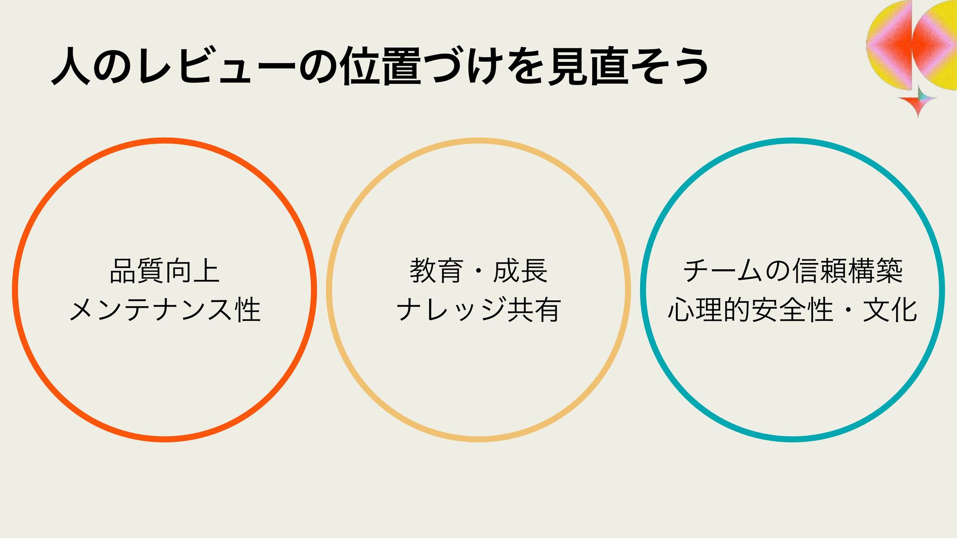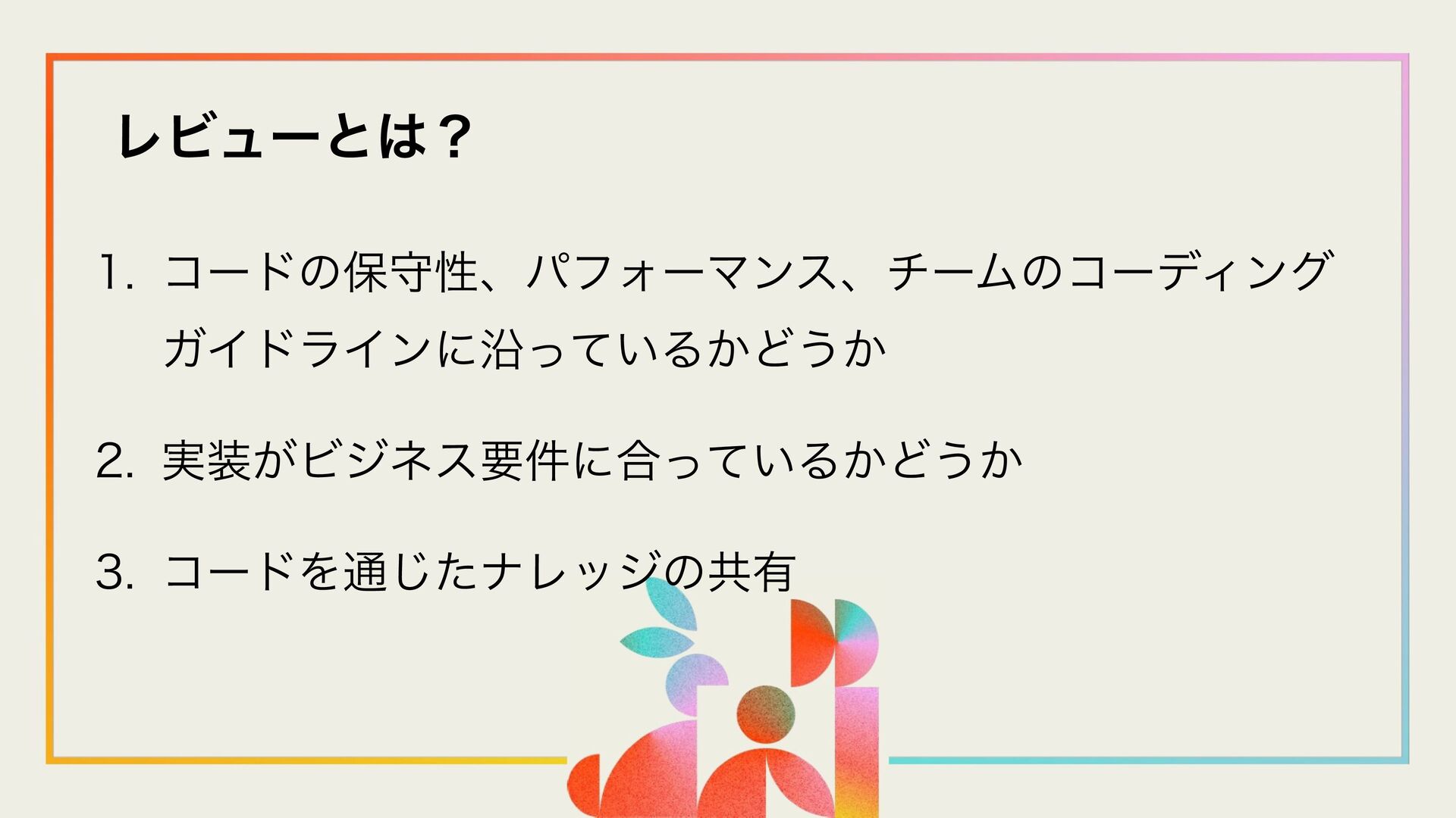 ίʔυͷอकੑɺύϑΥʔϚϯεɺνʔϜͷίʔσΟϯά ΨΠυϥΠϯʹԊ͍ͬͯΔ͔Ͳ͏͔ ࣮͕Ϗδωεཁ݅ʹ߹͍ͬͯΔ͔Ͳ͏͔ ίʔυΛ௨ͨ͡φϨοδͷڞ༗ ϨϏϡʔͱʁ