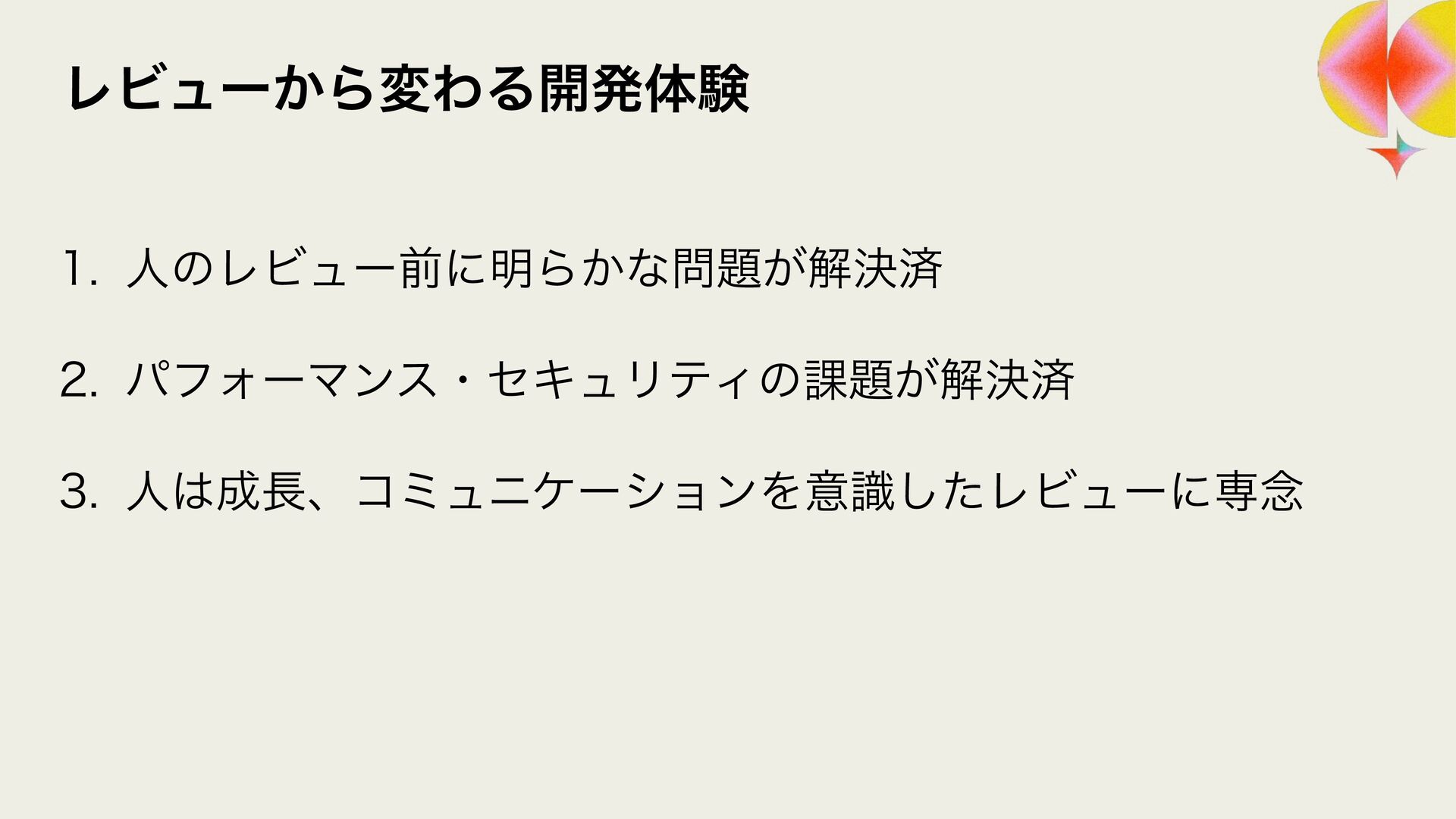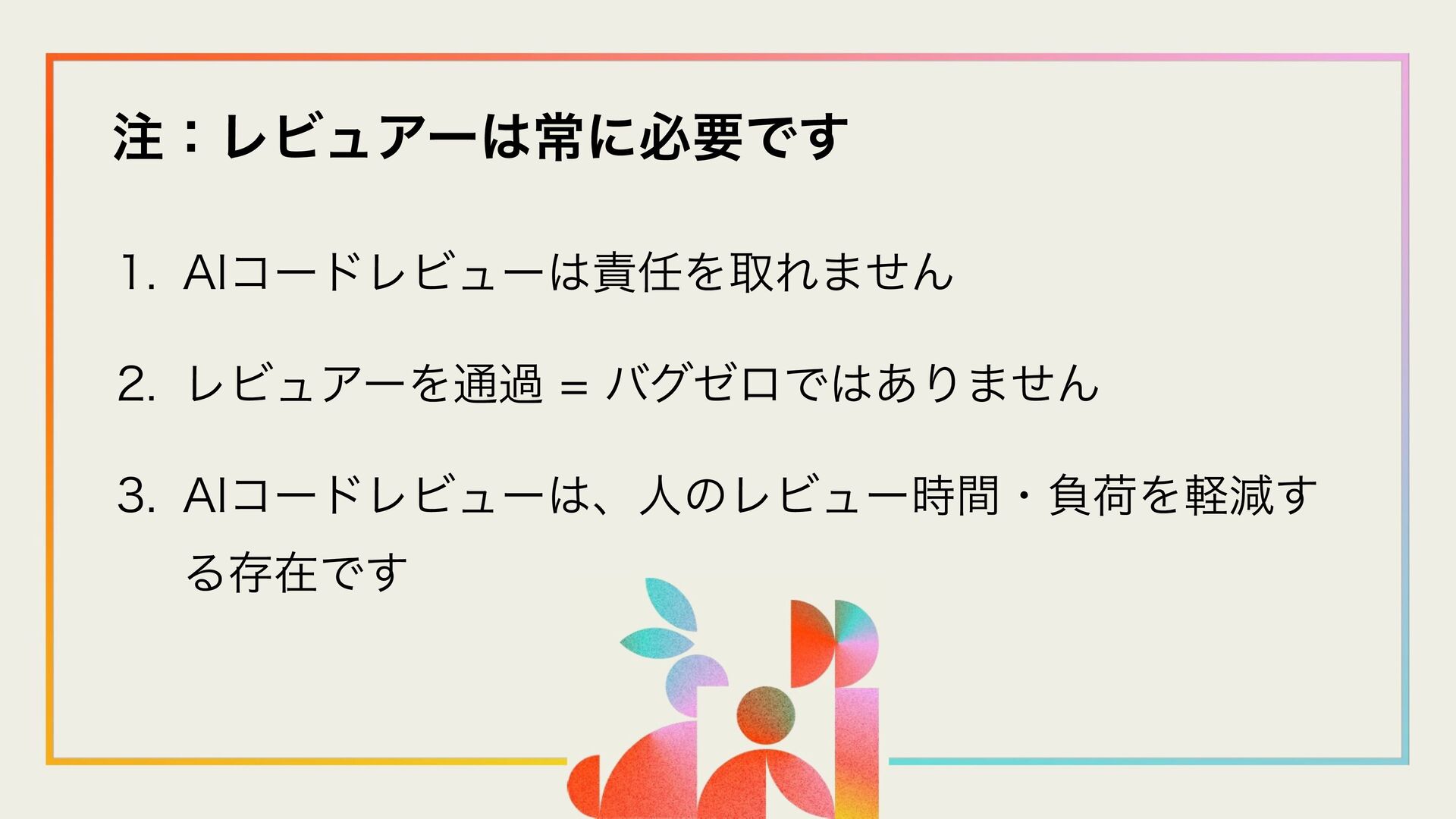 ɿϨϏϡΞʔৗʹඞཁͰ͢ "*ίʔυϨϏϡʔΛऔΕ·ͤΜ ϨϏϡΞʔΛ௨աόάθϩͰ͋Γ·ͤΜ "*ίʔυϨϏϡʔɺਓͷϨϏϡʔ࣌ؒɾෛՙΛܰݮ͢ ΔଘࡏͰ͢