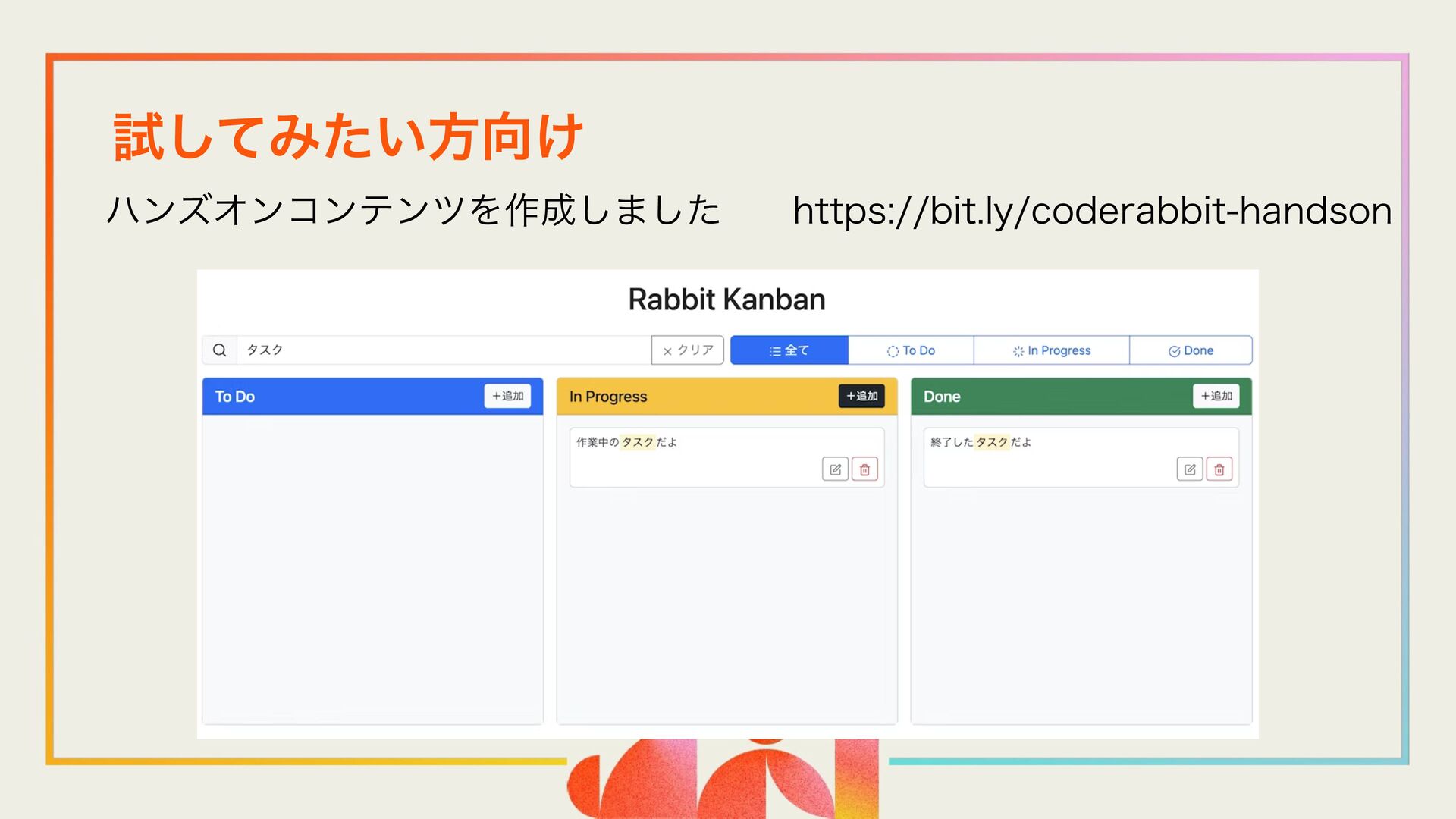 $PEFYͱྑ͘ɻ $PEF3BCCJU$-*ͷհ ɹ$PEFY.FFUVQ+BQBO "*Ͱٸ૿ͨ͠ੜ࢈ʮྔʯͷߥΛ $PEF3BCCJUͰΓ͜ͳͦ͏ $PEF3BCCJUσϕϩούʔΞυϘέΠτதಞ࢘ "*ۦಈ։ൃ$POGFSFODF"VUVNO